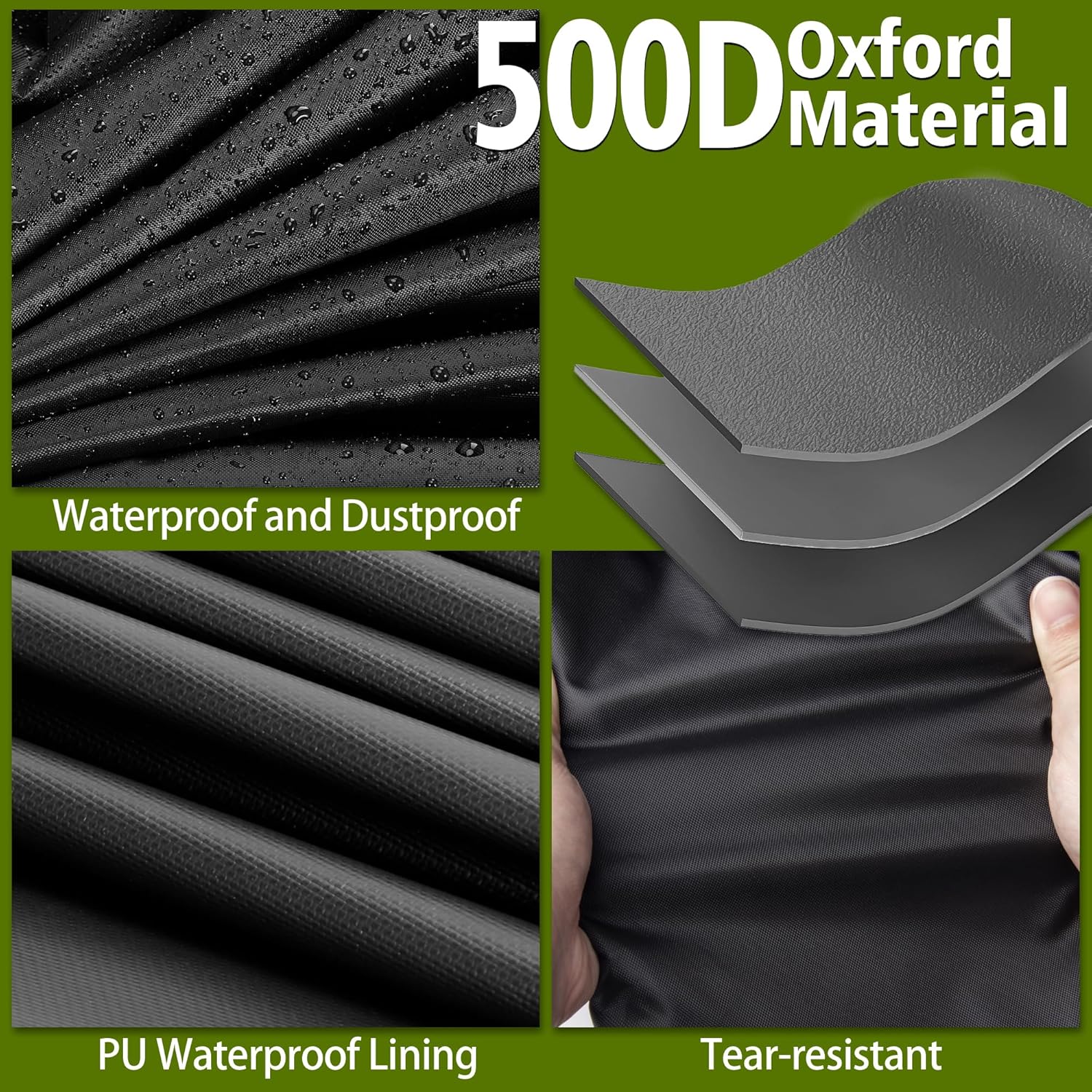 - Waterproof Material : The outdoor grill cart cover is made of 500D Oxford fabric, with extra waterproof strips at the tight seams to prevent water from seeping in from the seams, keeping the patio furniture dry and clean.
