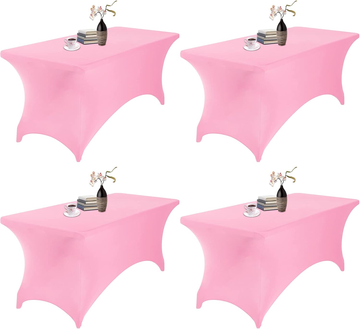 4Pack Spandex Waterproof Table Covers 6ft,Spandex 6ft Waterproof Table Cover for Party,Wedding, Banquet, and Events(Pink)