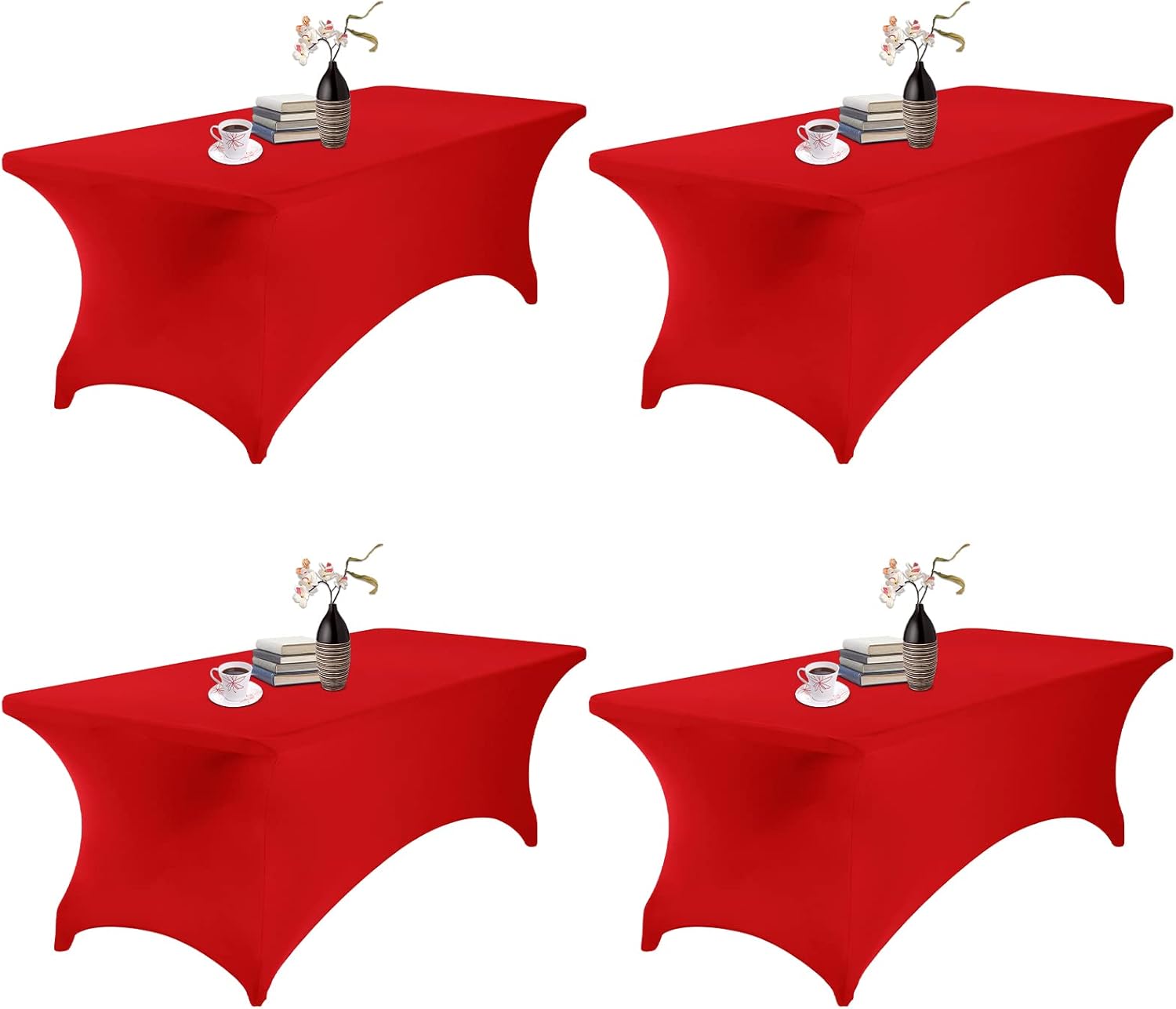 4Pack Spandex Waterproof Table Covers 8ft,Spandex 8ft Waterproof Table Cover for Party,Wedding, Banquet, and Events(Red)