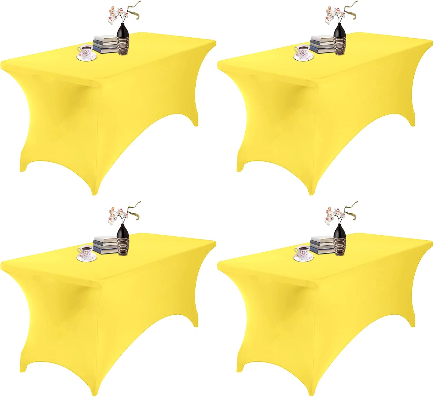 4Pack Spandex Waterproof Table Covers 6ft,Spandex 6ft Waterproof Table Cover for Party,Wedding, Banquet, and Events(Yellow)
