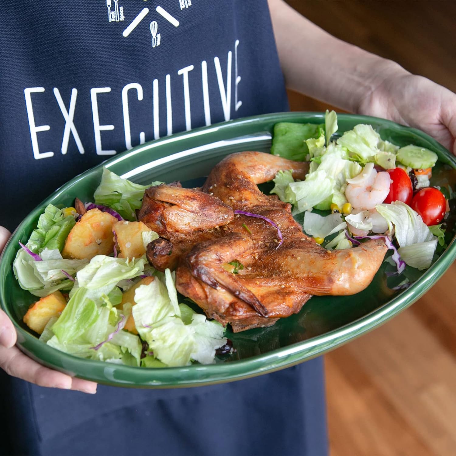 - LARGE LONG PLATTER: Our oval serving plates are 14.5 Inch long and easily stackable, the oversized fancy serving dishes are elegant and perfect for serving meat, turkey, roast chicken, steak, fish, sushi, dessert, fruit, salad and bread