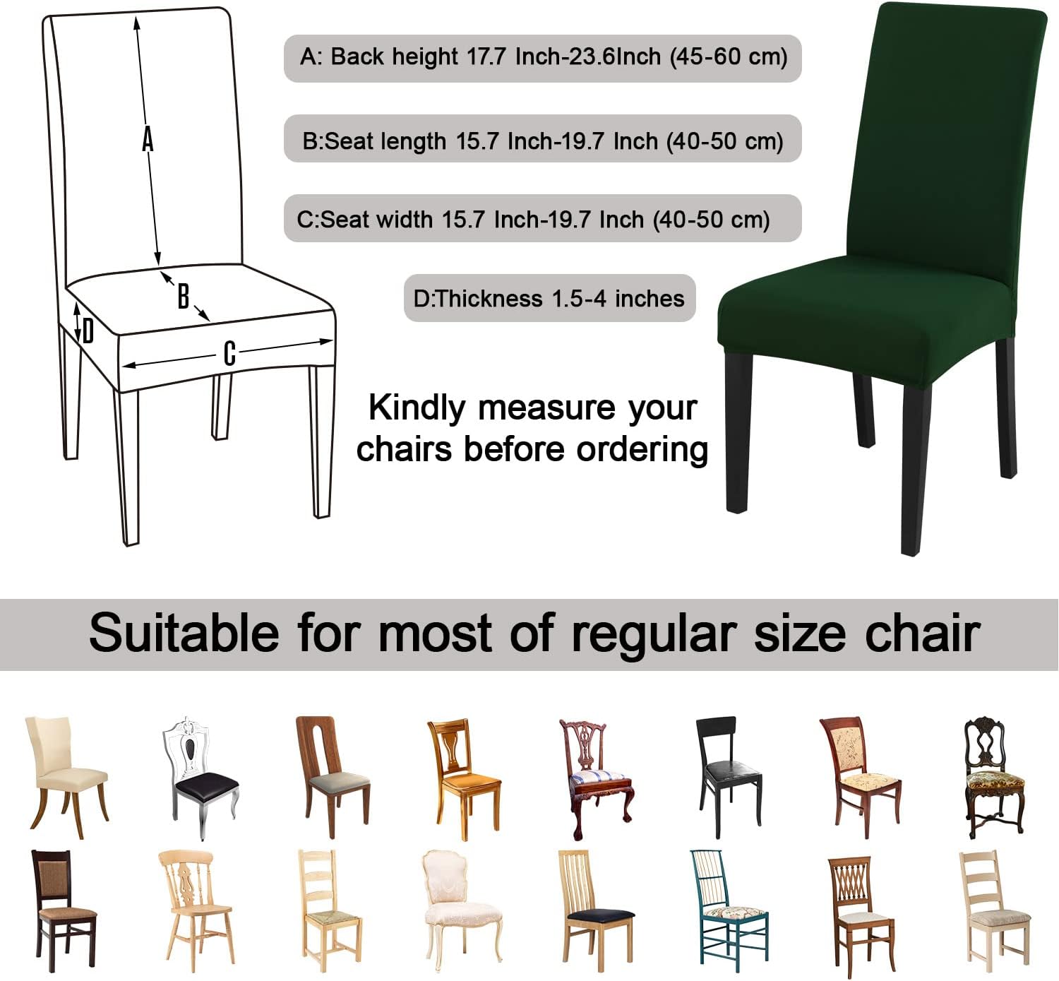 JQinHome Chair Covers for Dining Chairs, High Stretch Removable Washable Chair Protector Cover Set of 6, Chair Slipcovers for Dining Room, Kitchen,Home Party,Wedding Ceremony(Hunter Green, 6PC)