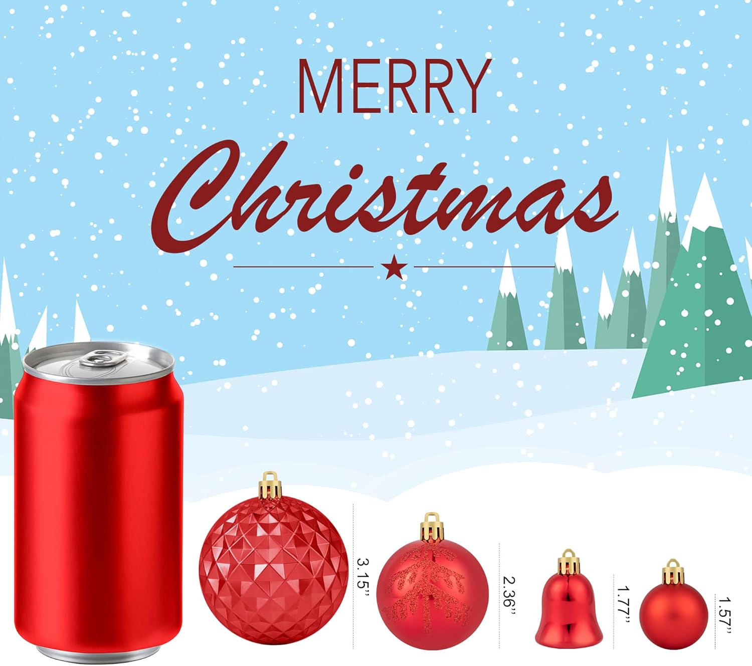 - 【Christmas Ball Ornaments】 This green and red Christmas ornament set contains 116PCS of Christmas balls in 18 styles, includes various shapes, sizes, such as 1.57” / 2.36” / 3.14” Christmas ball, stocking , bell, and gift. It's your call to complete your Christmas decoration with these beautiful balls ornaments set, and make the Christmas season more memorable and unique