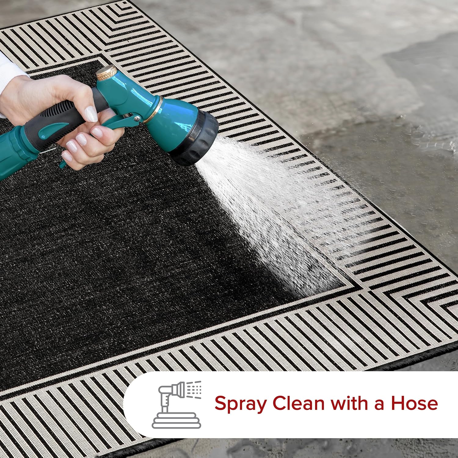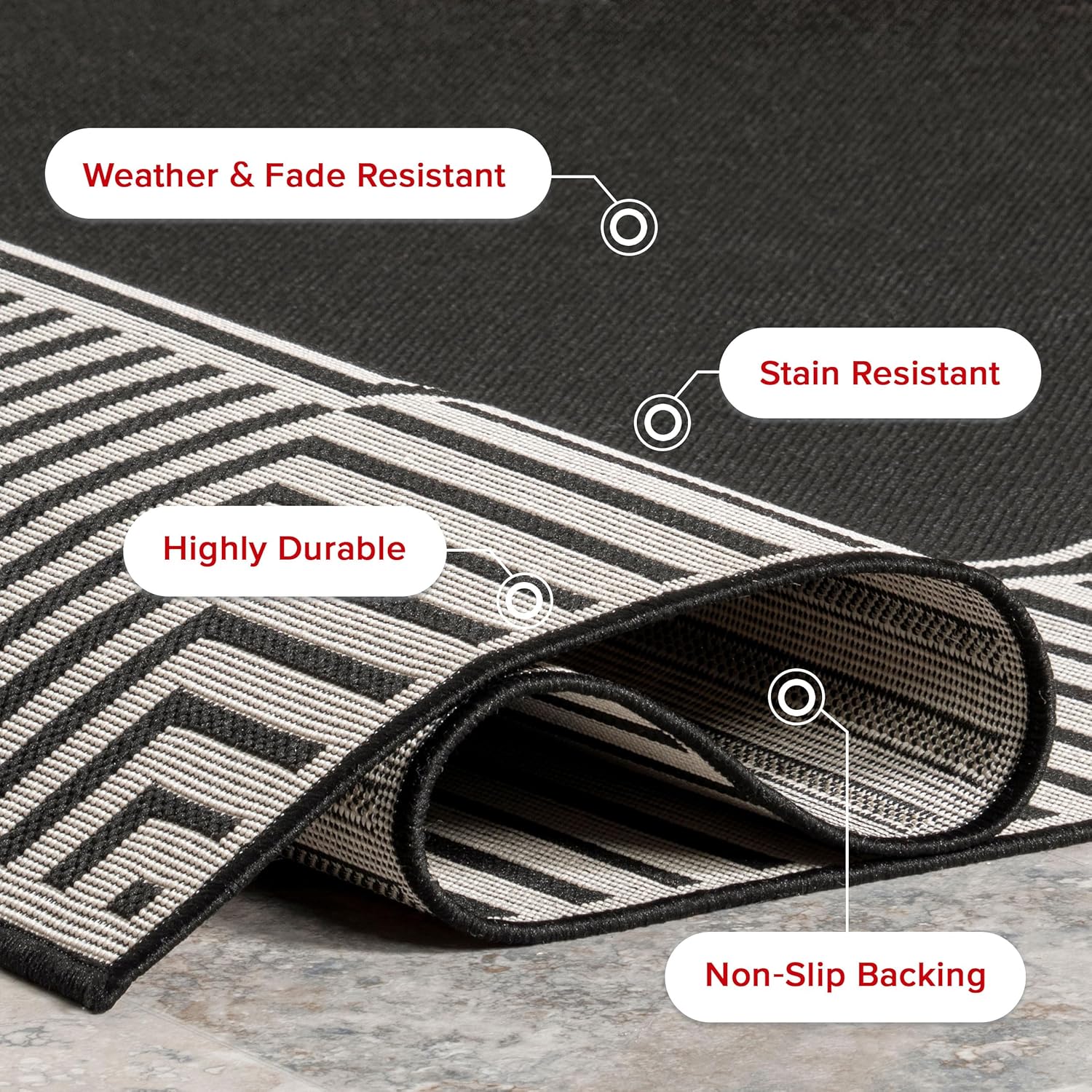nuLOOM 4' x 6' Outdoor Area Rug, Casual Design With Striped Border, Stain Resistant, Highly Durable, For Patio, Balcony, Bedroom, Living Room, Dining Room, Bathroom, Black