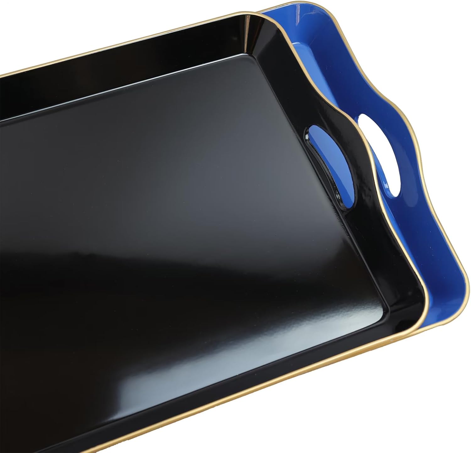 Spsyrine Large Blue Serving Tray with Handles, Plastic Decorative Tray for Coffee Table, Ottoman, Bathroom, Home Decor 17.3"*11.8"*2"