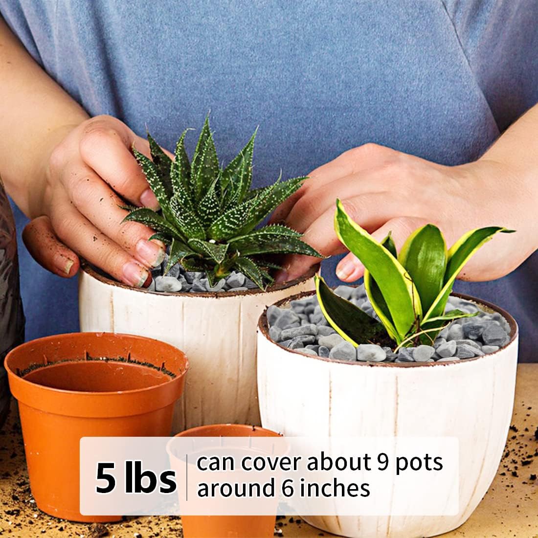 - 【Gravel Pebbles Size】These stones are packaged in a 5 pounds bag. The size is about 1/5 inch, it is perfect for succulent and cactus plants, as well as any vase or terrarium