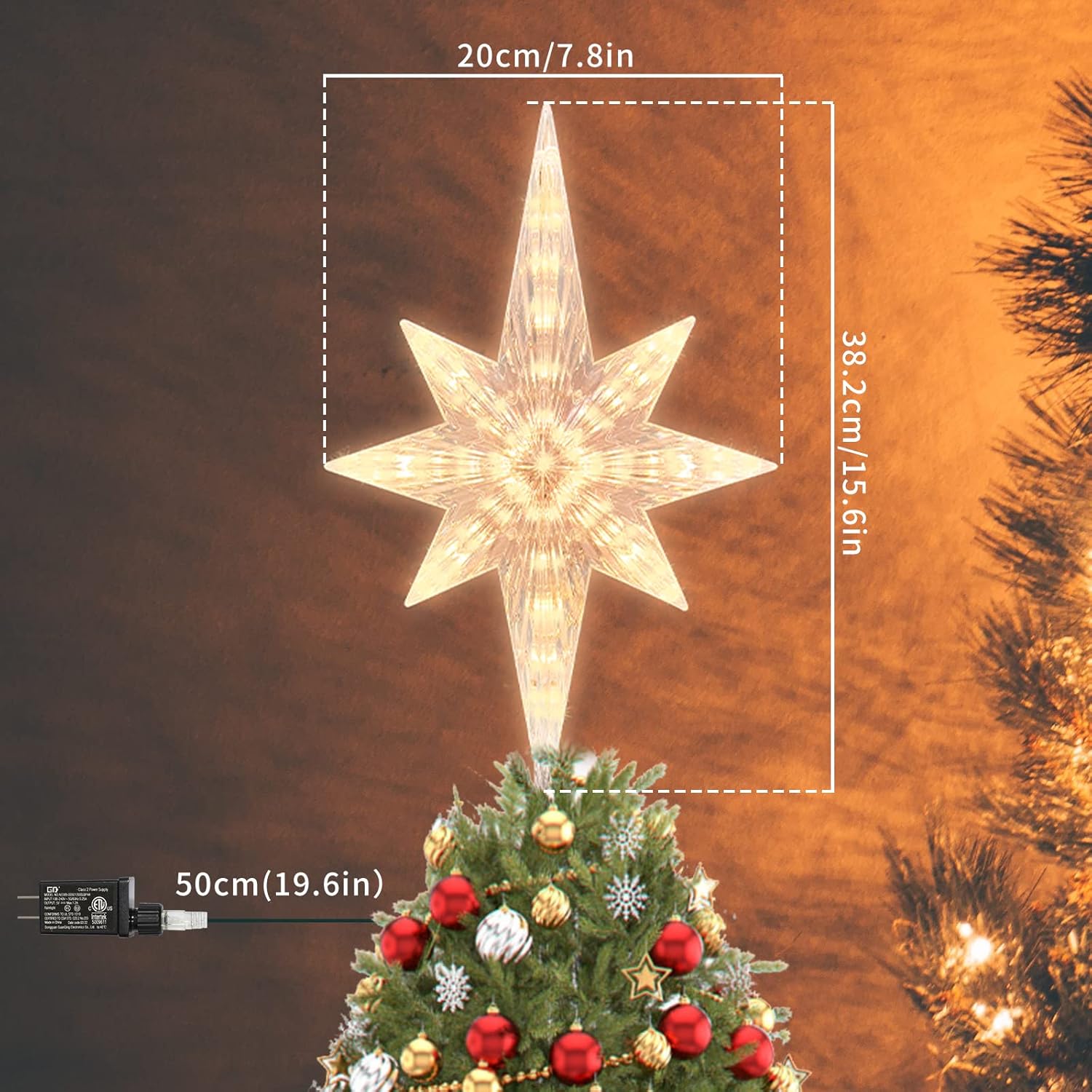 - This Bethlehem Star tree topper is designed with warm white light, will bring you a warm and comfortable atmosphere. You and your families will be very relax and enjoy the evening.