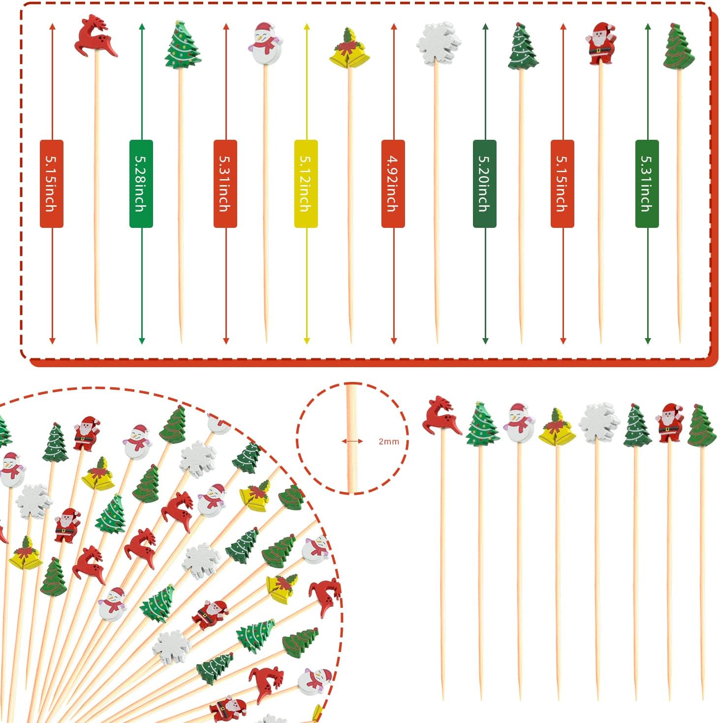 - Includes 100 count Christmas decorative toothpicks. Economical, disposable and eco-friendly