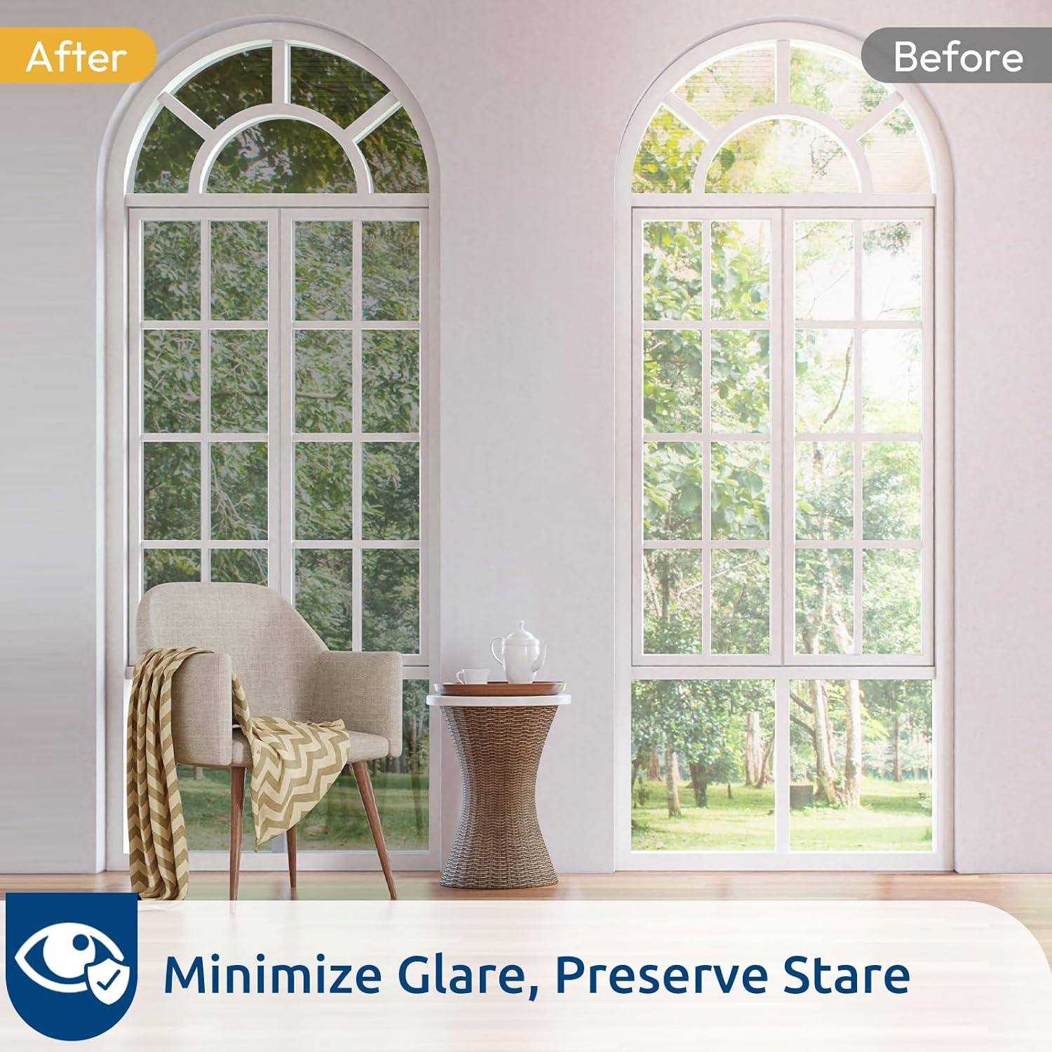 - UV Protection, Glare Reduction: Blocks up to 83% of UV rays, this window film heat blocking helps protect flooring, furniture, and draperies from fading. It also protects your eyes and skin from harmful UV rays. With 24% VLT, it effectively reduces glare while allowing some visible light in, creating a comfortable indoor environment