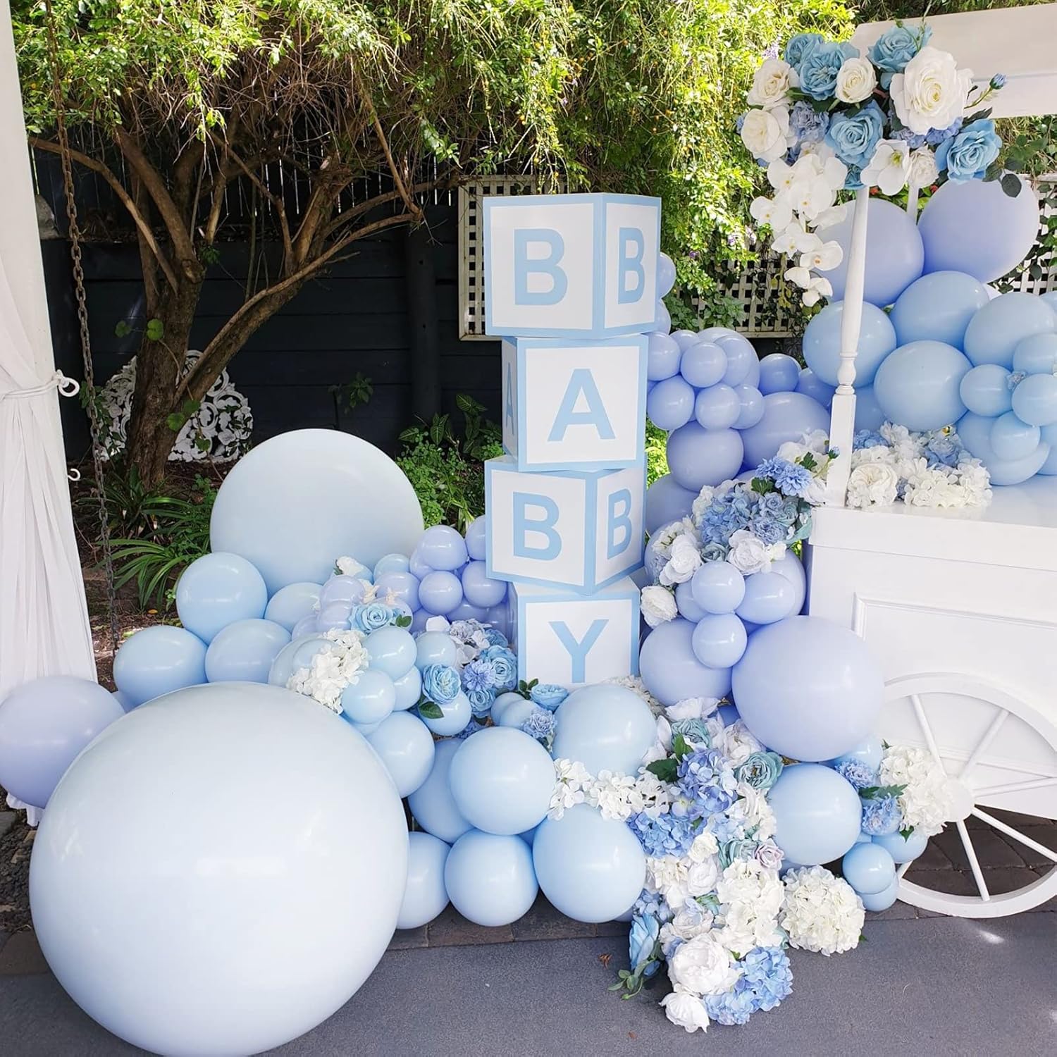 130pcs Light Blue Balloons Different Sizes 18" 12" 10" 5" Baby Blue Balloons for Boys Girls Birthday Baby Shower Gender Reveal Wedding Children's Day Decorations