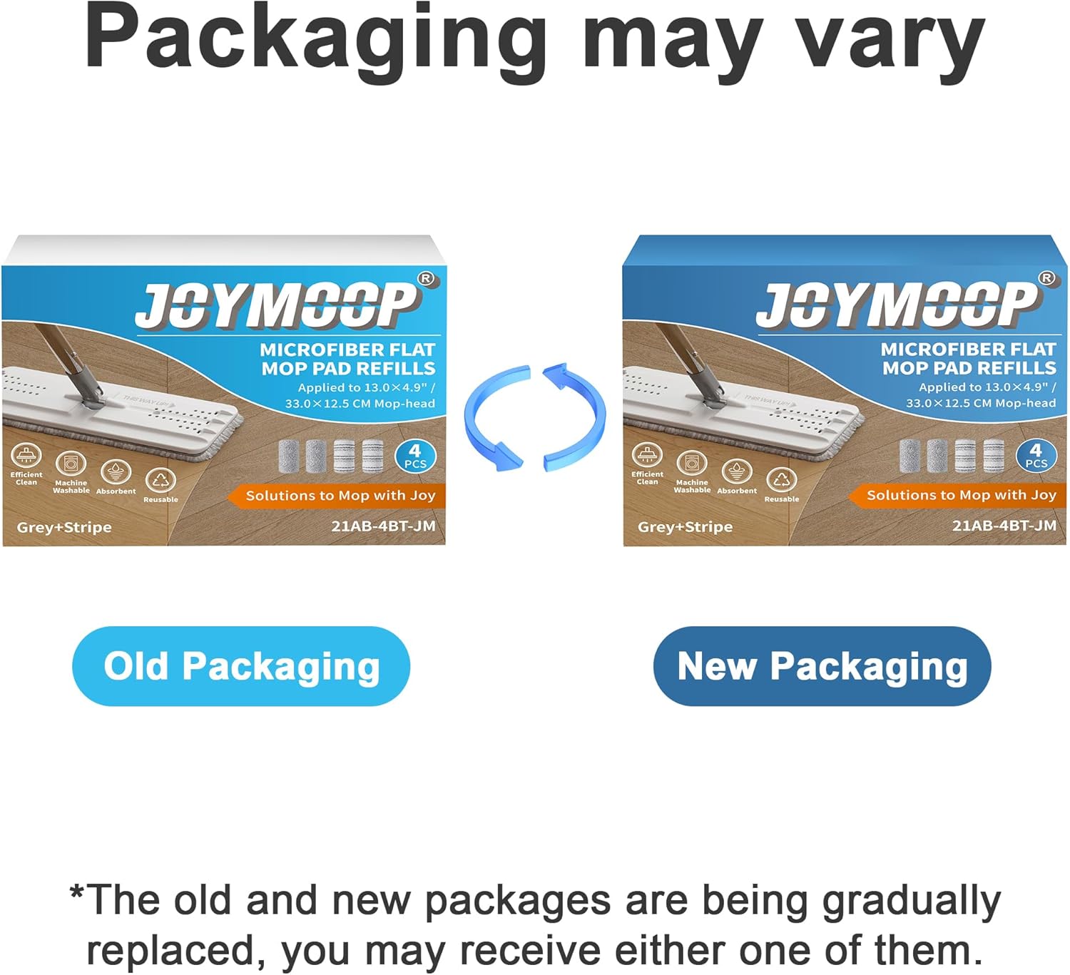 JOYMOOP Flat Mop Pads, Microfiber Mop Cleaning Pads, Washable Pads, Pads Replacement for JOYMOOP Flat Mop or Mop Bucket Set, Pack of 4 Refills 13inch - Grey and Stripe