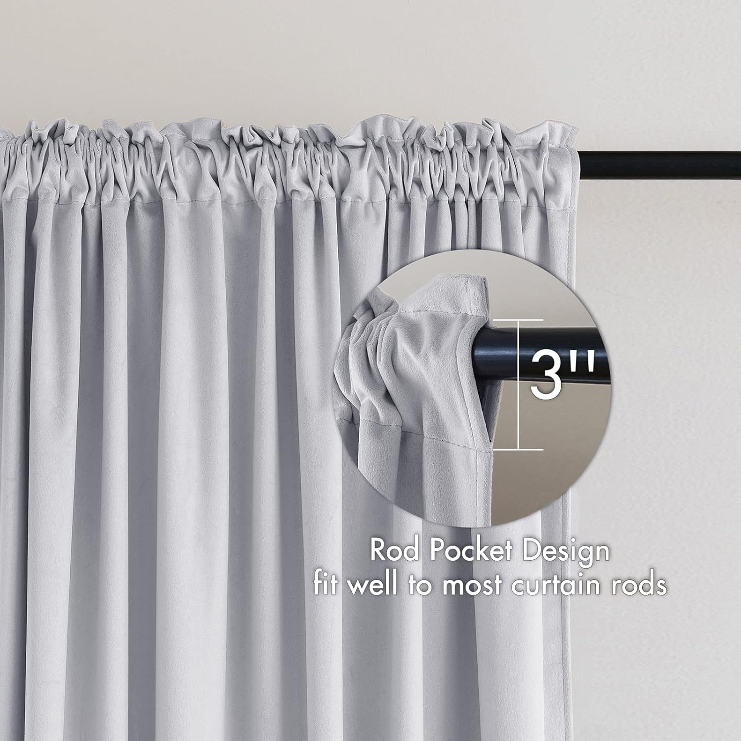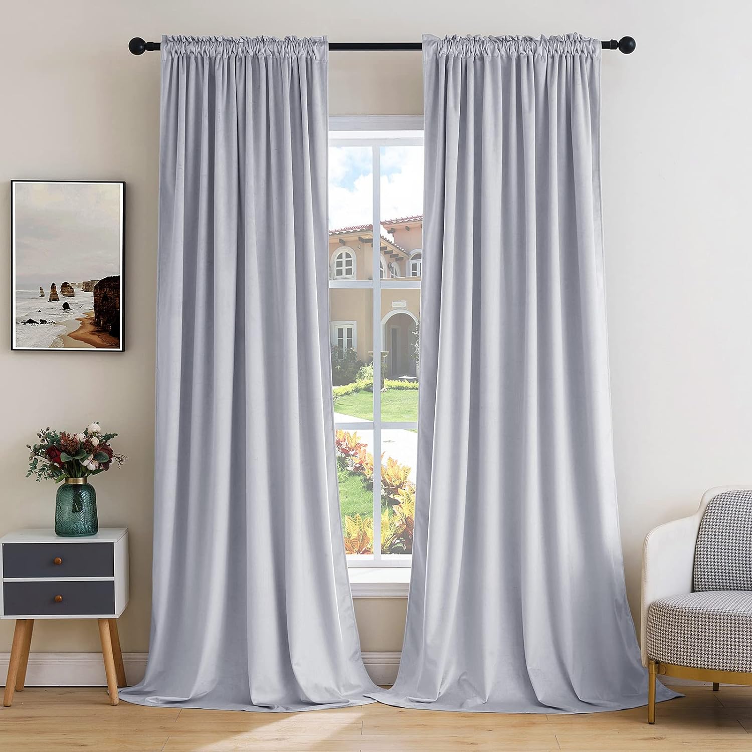 MIULEE Greyish White Velvet Curtains Thermal Insulated Blackout Curtain Drapes for Bedroom Living Room Darkening 72 Inches Long Curtains Panels Rod Pocket Set of 2