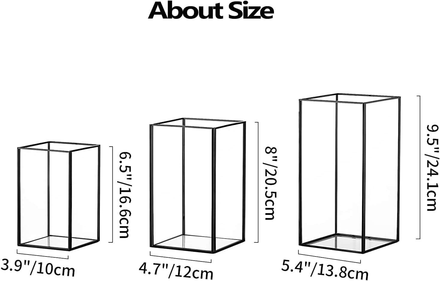 - 3 Different Sizes -- The square candle holders are 3 different sizes, which is so much more interesting to look at. They can meet your different needs. It can not only hold pillar candles, electronic candles or tea light candles, etc., but also some dried flowers, colored stones, fairy lights, makeup brushes or pencils.