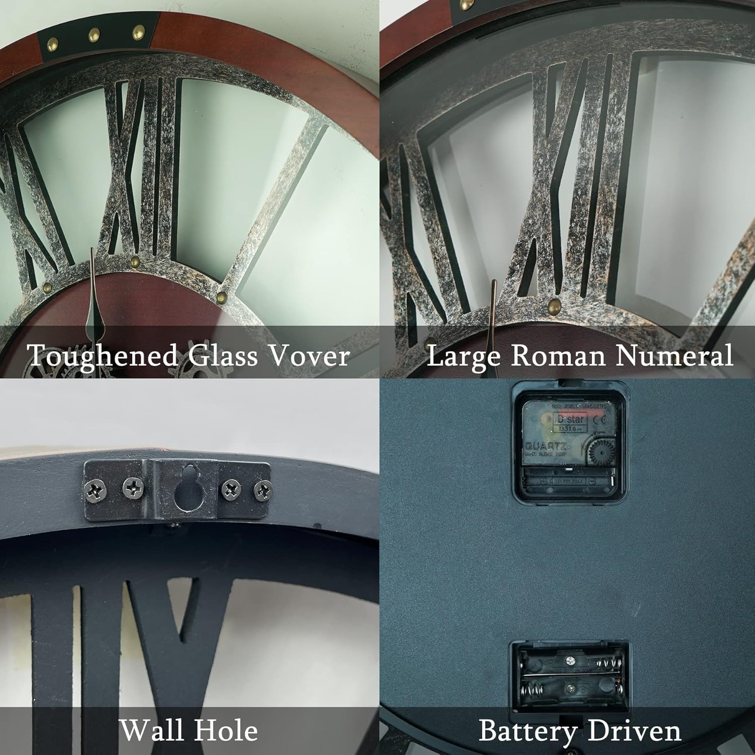 - 🕞Real Rotating Gears: The exposed gears on this large wall clock are real and rotate independently of the pointers. With a dust proof glass cover and battery powered operation, the gears rotate almost silently, providing a unique and dynamic way to experience time.