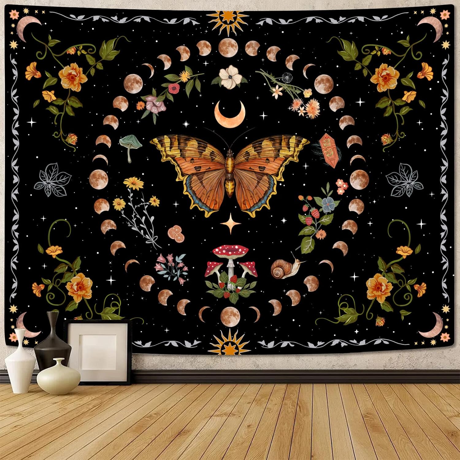 - 🎄【Service】: If you have any problem with thebutterfly moon flower tapestry, please customer service immediately, we will solve it for you. These aesthetic tapestries have three sizes, 48'' wide × 36'' high, 60'' wide × 44'' high, 80'' wide × 60'' high.