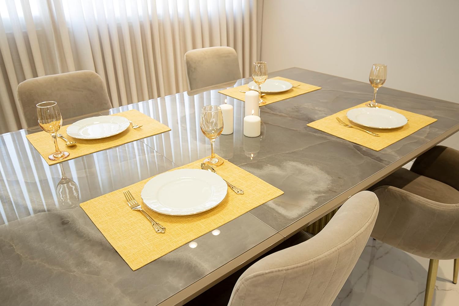 Placemat Set-Washable Place Mats for Parties, Elegant Table Mats for Kitchen Table, Set of 4 Dining Table Placemats, Heat-Resistant Cloth Placemats for Indoor and Outdoor,13x19-Yellow