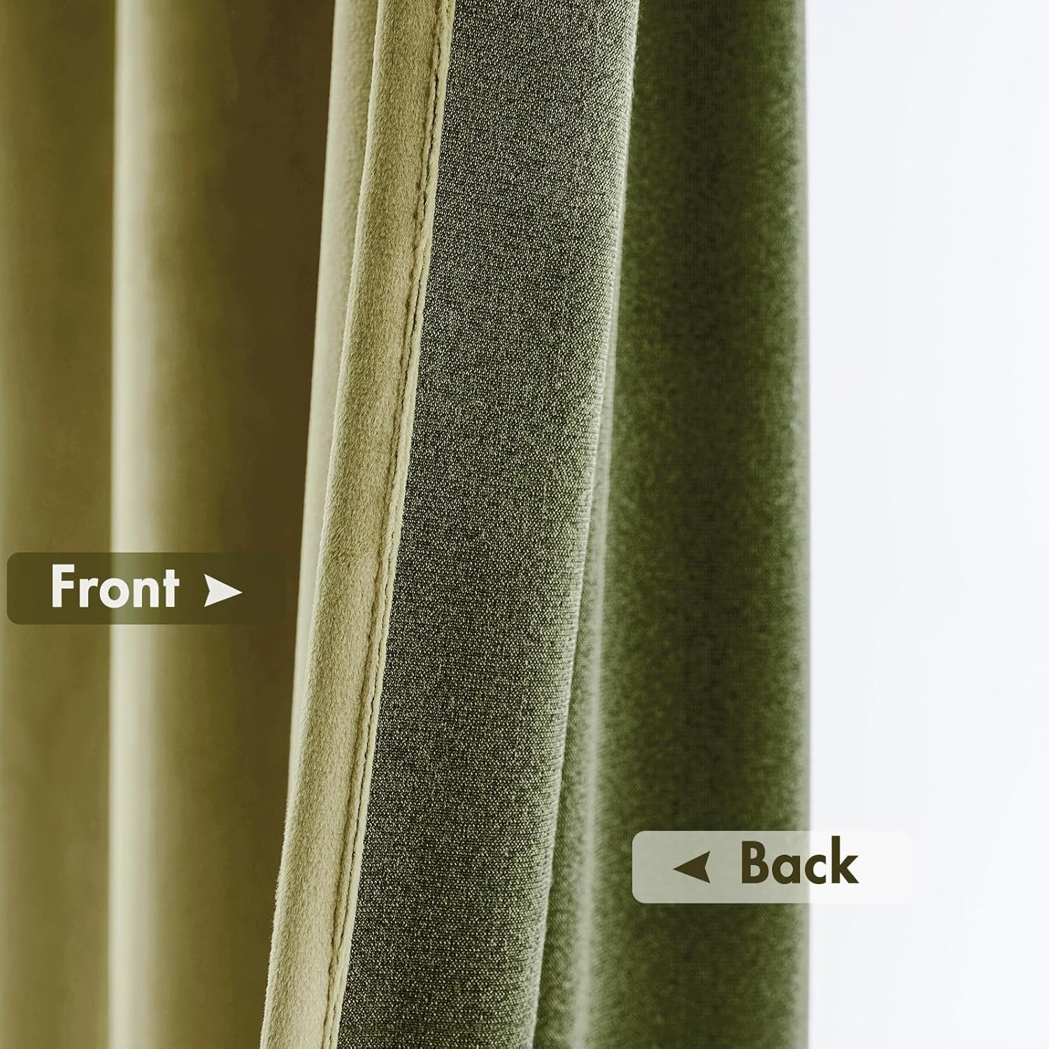 MIULEE Moss Green Velvet Curtains Thermal Insulated Blackout Curtain Drapes for Bedroom Living Room Darkening 108 Inches Long Curtains Panels Rod Pocket Set of 2