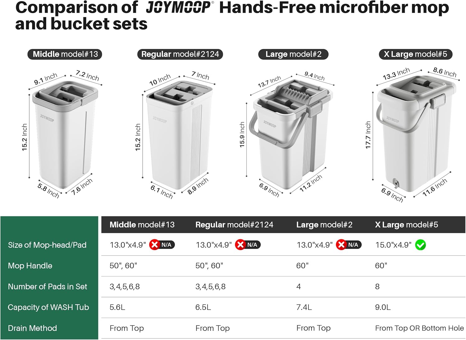 - It's easier and much more efficient to use JOYMOOP's flat mop with it's specified JOYMOOP's buckets together.