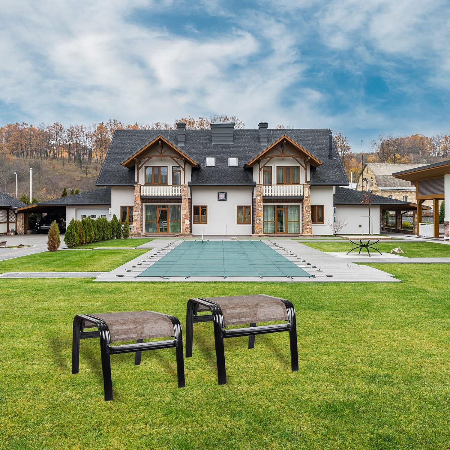 Patio Ottoman Outdoor Footstools Assembled Aluminum Footrest Small Seat for Balcony,Backyard 2 Pack Brown