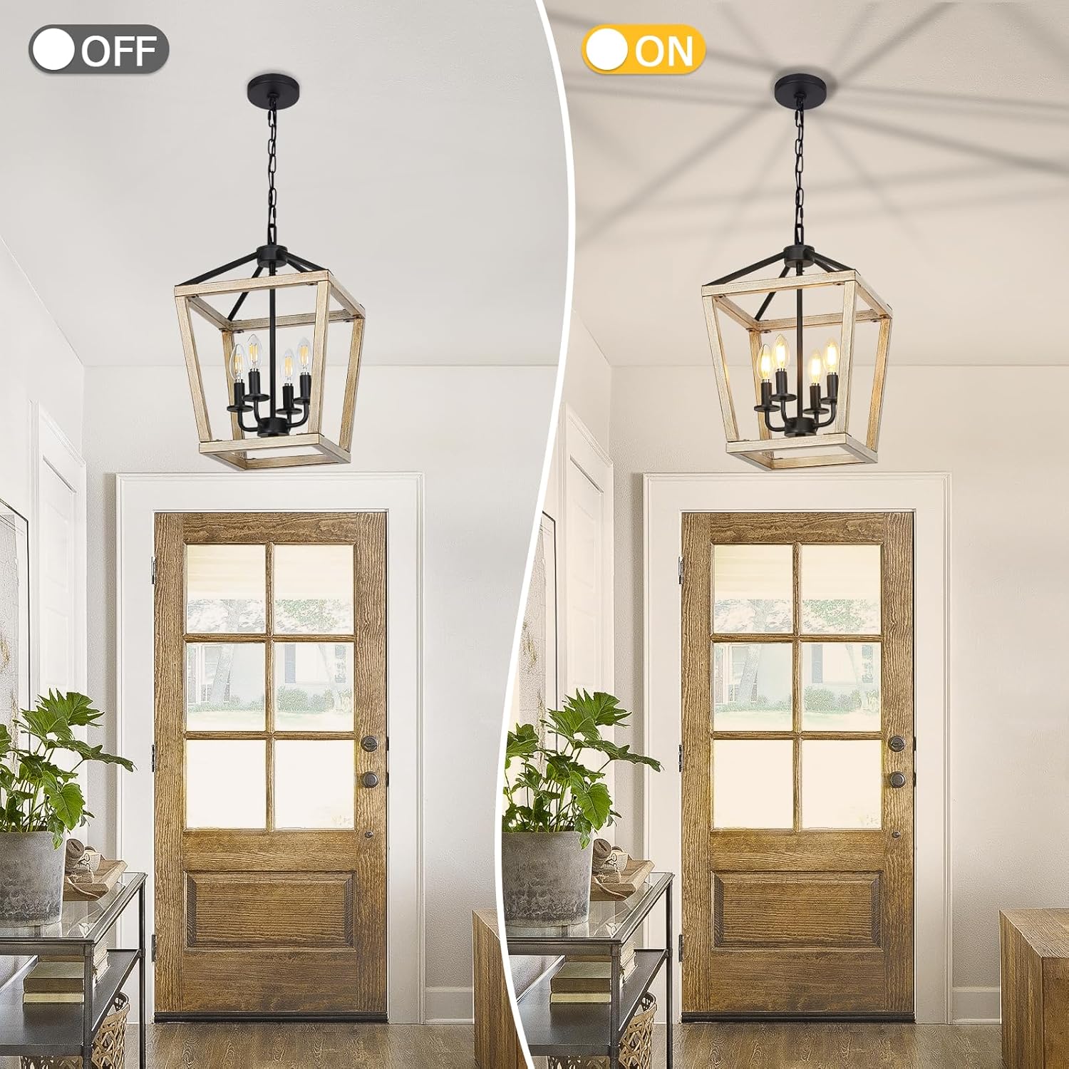 - Light Fixture with Brushed Rustic Oak: Featured with black center candlestick and brushed rustic oak metal frame, the chandelier is a wonderful addition to add farmhouse style to your home décor. Artistic and eye-catching, it can perfectly blend in bedroom, living room, bathroom, dining room, hallway or kitchen island(indoor use only)