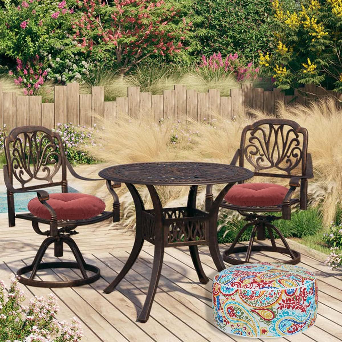 - ăStylish Patternsă-Unique modern retro style designed by our designer which can decorated your indoor home. The cover of patio ottoman features 500HRS UV protection to resist fading, retained its color and keep the painting vibrant after long time using. The hidden invisible zipper closure works smoothly, easy to insert and remove the PVC inner.