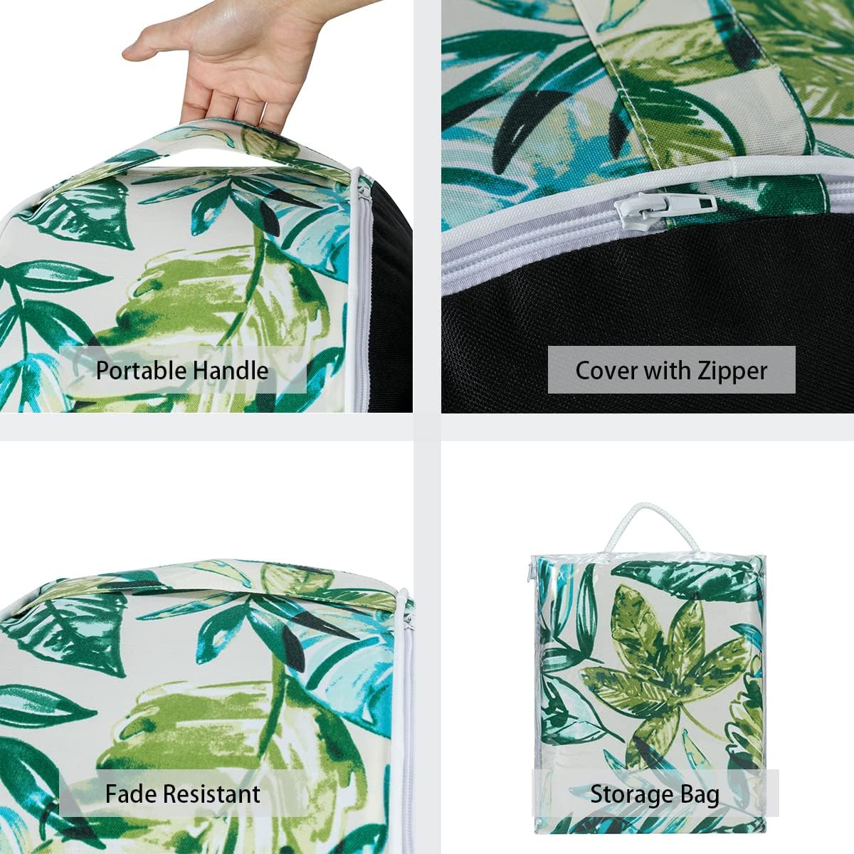FUNHOME Inflatable Outdoor Ottoman with Air Pump,20"x9" Portable Patio Pouf,Water Resistant,Fade-Resistant,Round Blow Up Footrest Stools for Home Garden Camping Travel(Palm Leaf)