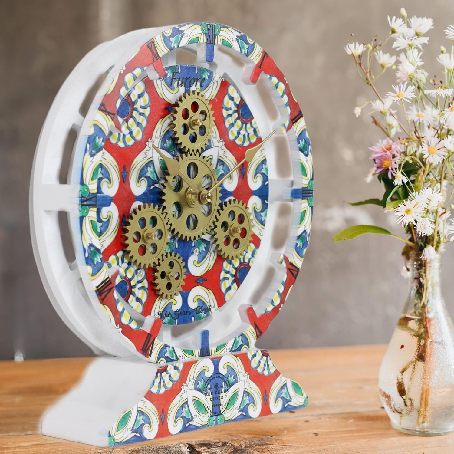 The Gears Clock Wall Clock Italy Collection with Moving Gears (Furore, 10 inch Round)