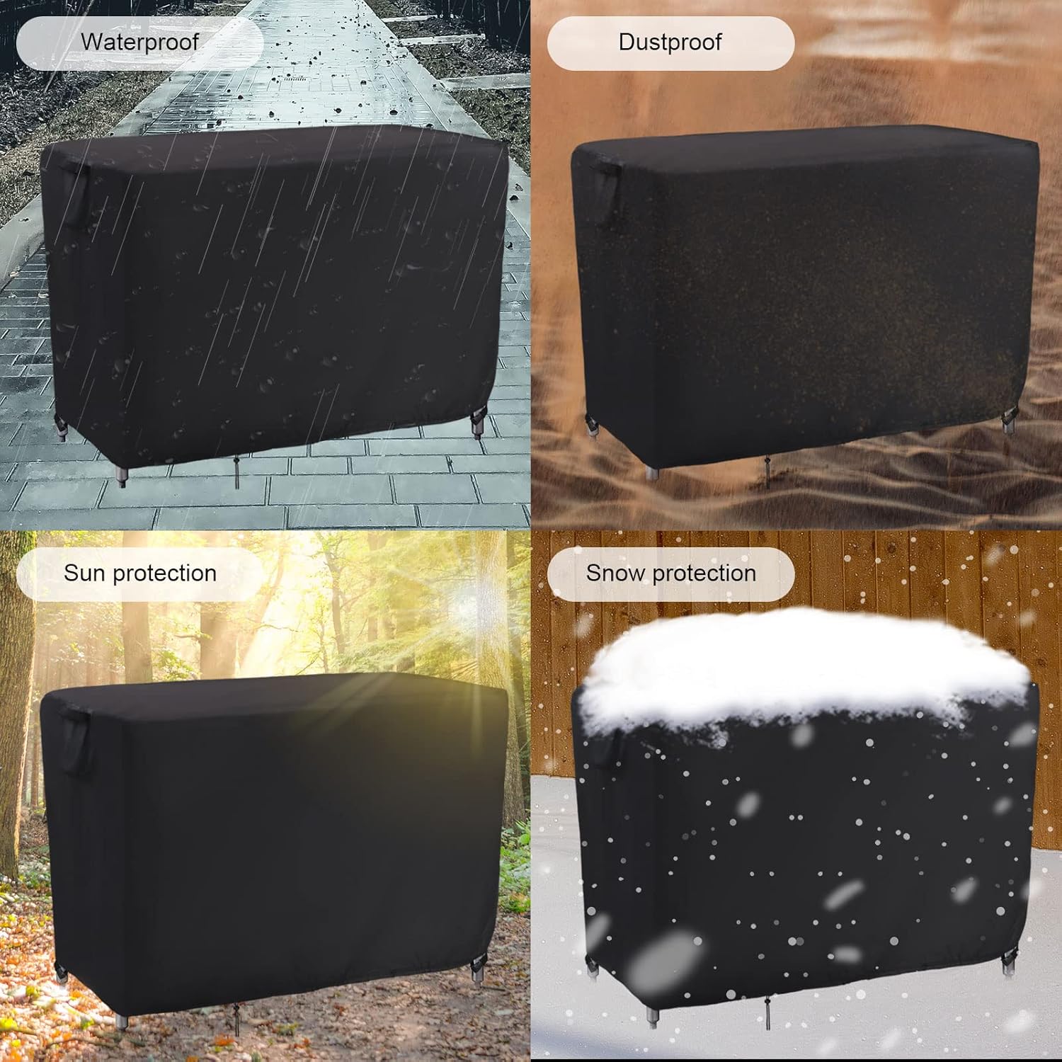- Waterproof Material : The outdoor metal table cover is made of 500D Oxford fabric, lined with waterproof silver plated coating, with extra waterproof strips at the tight seams to prevent water from seeping in from the seams, keeping the furniture dry and clean.