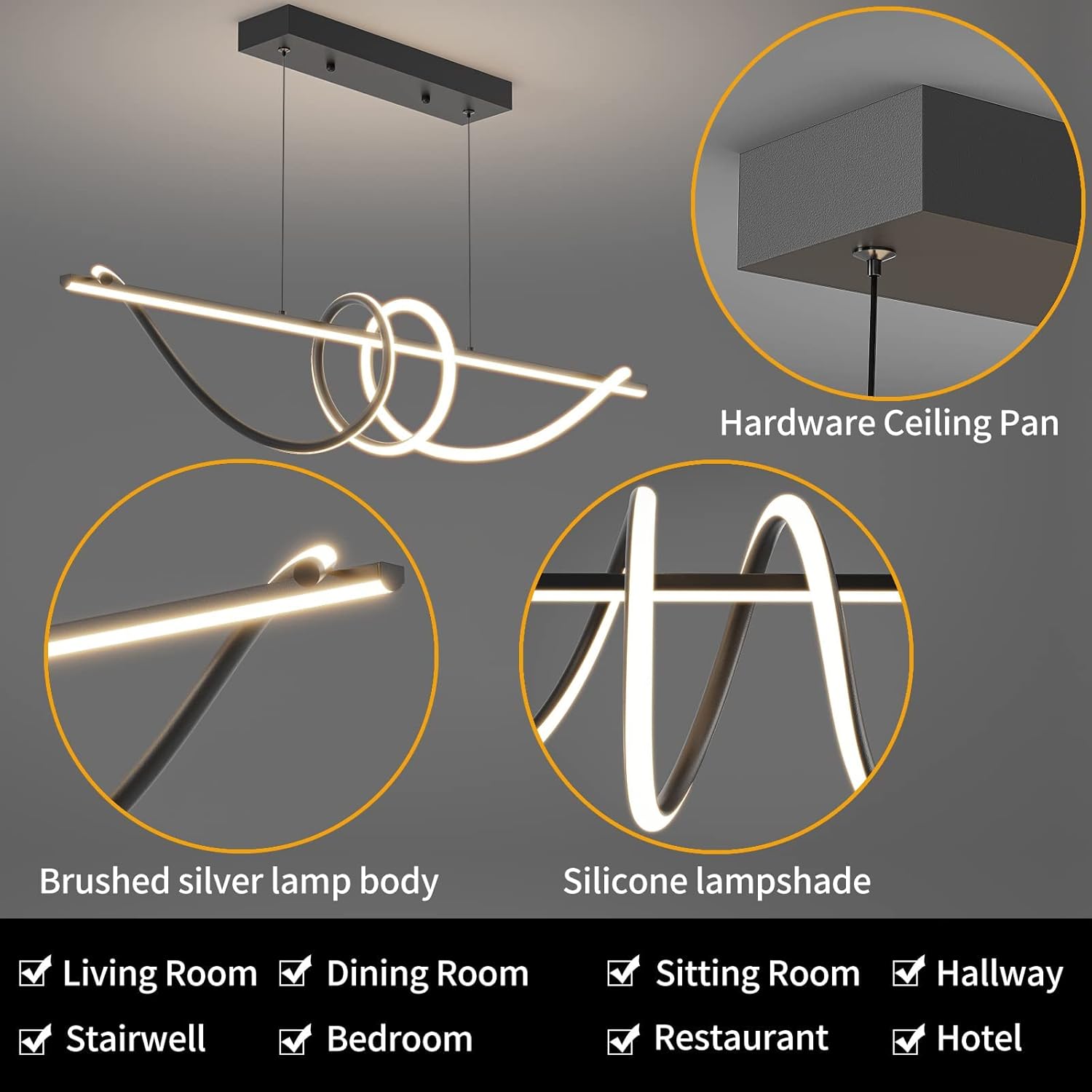 - LED Light Source : - The ceiling dining room light consists of 2853 high quality lamp beads, high brightness, anti-flicker, eye protection, energy saving and environmental protection, average service life of 50,000 hours, no UV and IR radiation, eye protection. Comfortable to use.