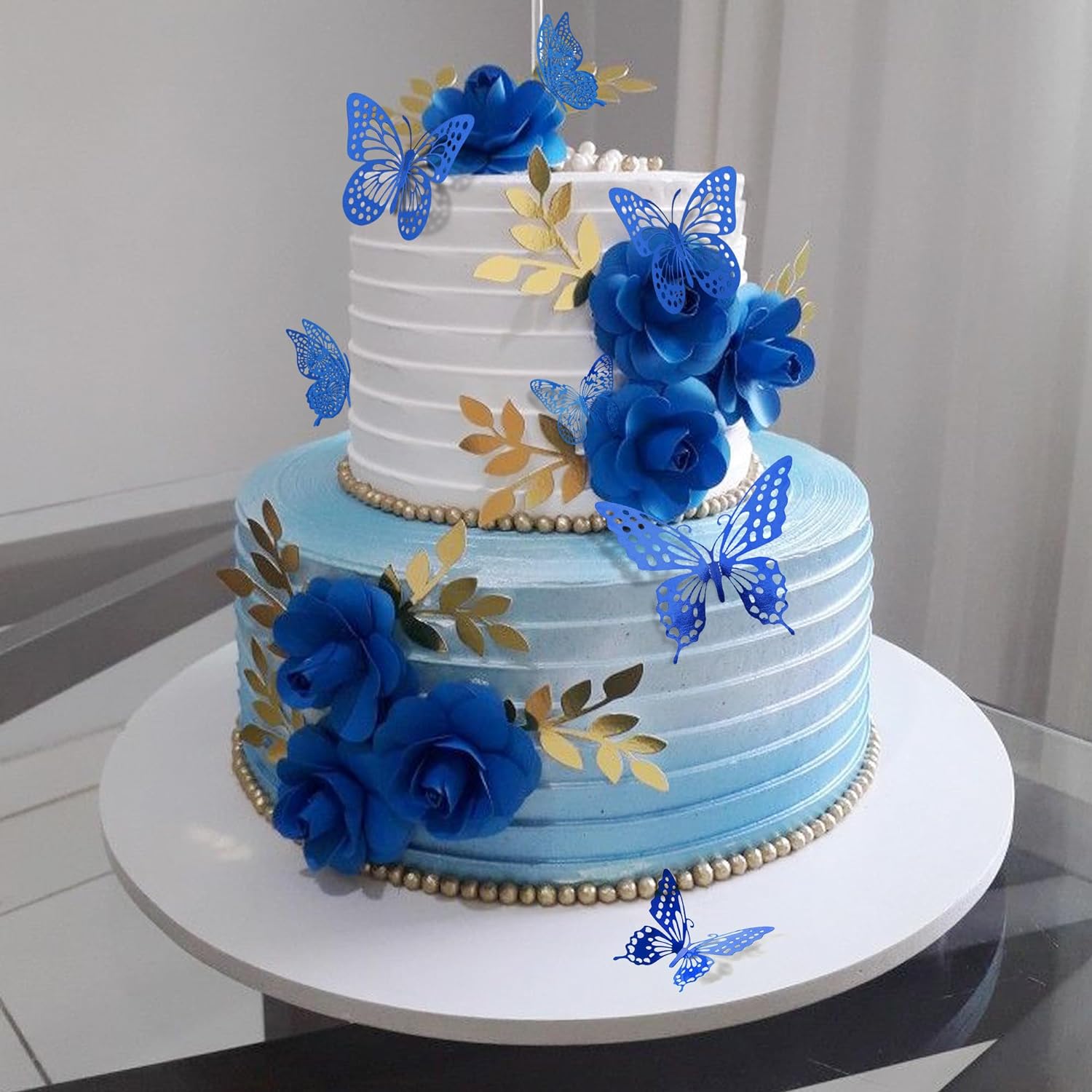 SAOROPEB Butterfly Wall Stickers, 48 Pcs 4 Styles 3 Sizes, Metallic Paper, Removable, Navy Blue, Art Deco Decor for Wall