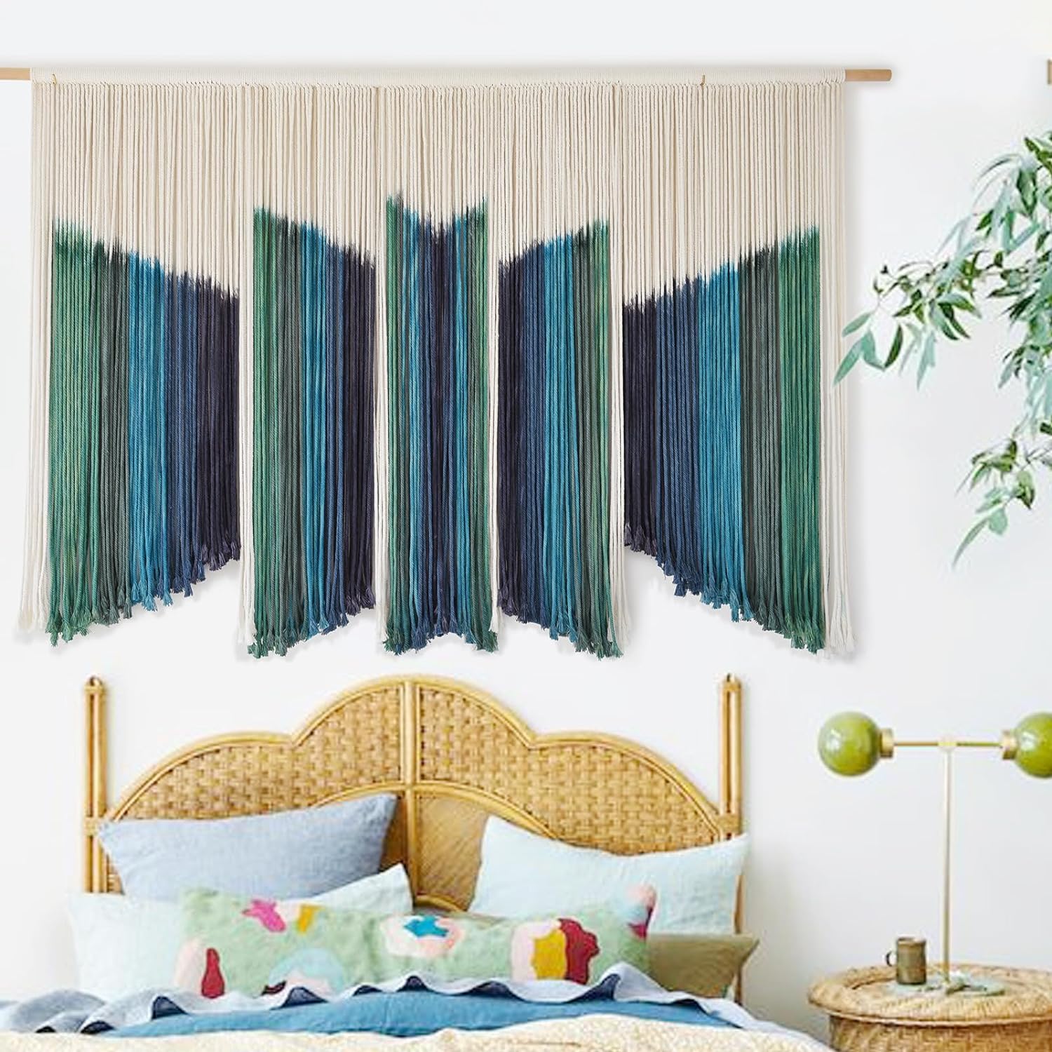 - 【Dimensions】: 59"L across X 37" W-(approximate length from the top of the stick to the tip).Color: The blue/green macrame wall hanging is designed with geometric natural patterns with 5 various color combinations that make the eyes light up.