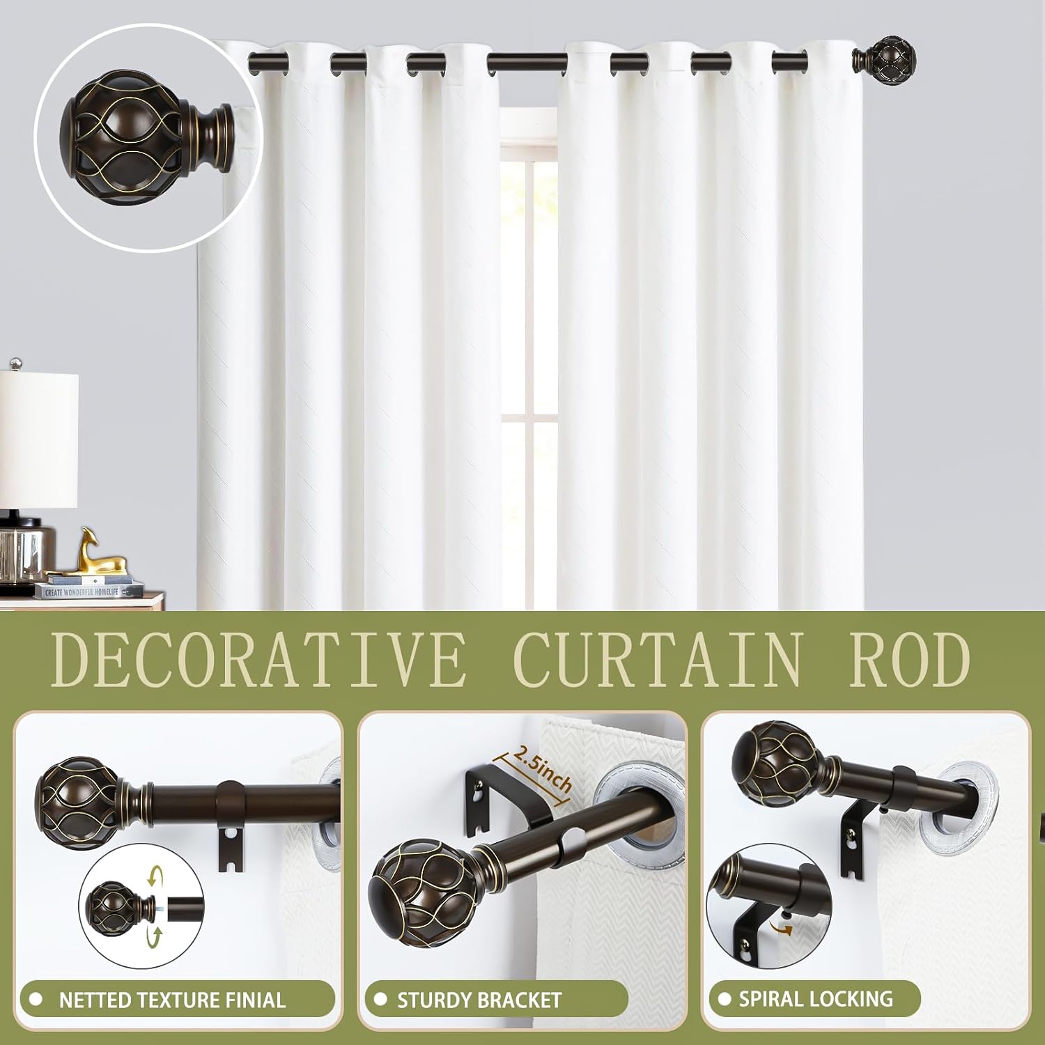 - Easy to Install Curtain Rods: TANGWIN provide detailed illustrated size instructions and modern decorative window curtains rod shipping package has detailed installation instructions inside, follow the steps, antique bronze curtain rods can easily complete the installation.