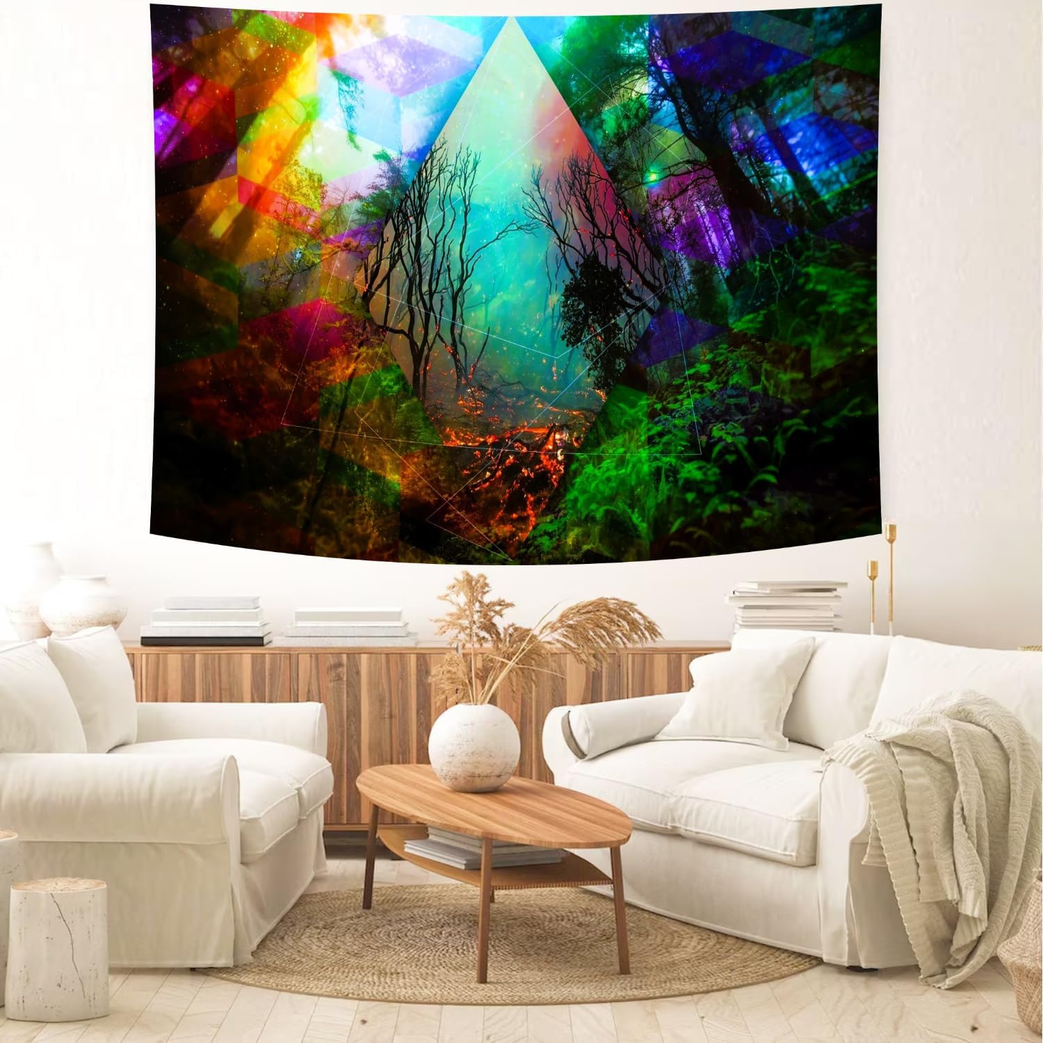 Delur Forest Tapestry Tree of Life Tropical Rainforest Tapestry Wall Hanging Colorful Nature Landscape Mystical Psychedelic Spiritual Headboard for Bedroom Living Room Home Decor (51.2" x 59.1")