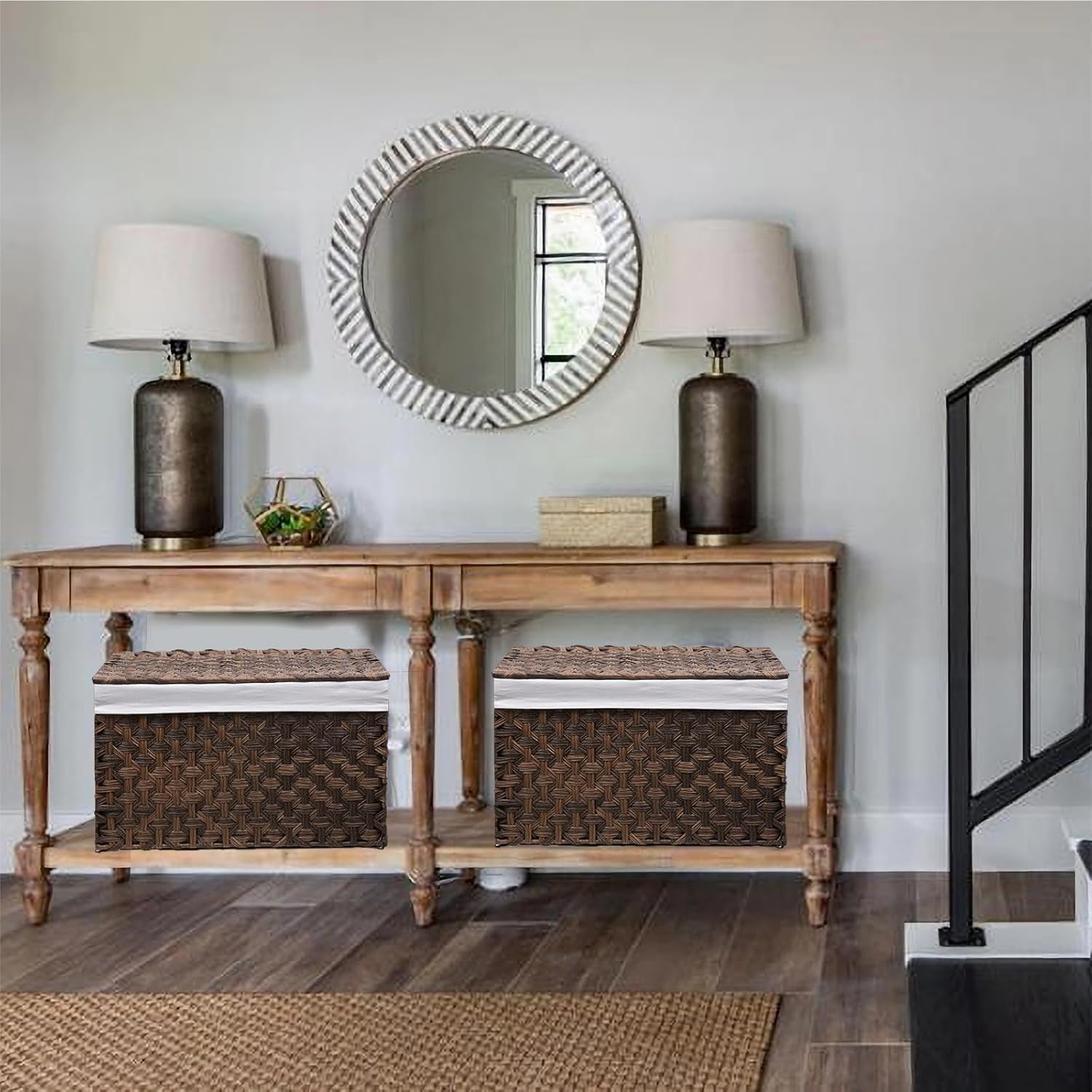 - [Washable Lining Bag] The included cotton lining bag is easily washable, ensuring the cleanliness of your stored items. This lining bag is securely fixed on the wicker basket with lid using two ropes, providing added stability and convenience