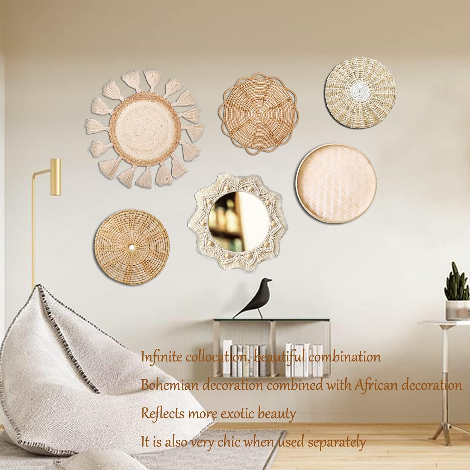 - 【Exquisite Wall Decor】: This simple bohemian wall hanging set is the most classic match, perfect for hanging in living room, dining room, kitchen, bedroom, dorm room, fireplace and other prominent walls, also can be combined with any bohemian style woven wall decorations, such as rattan, wicker, bamboo, sea grass, etc. You will love it.