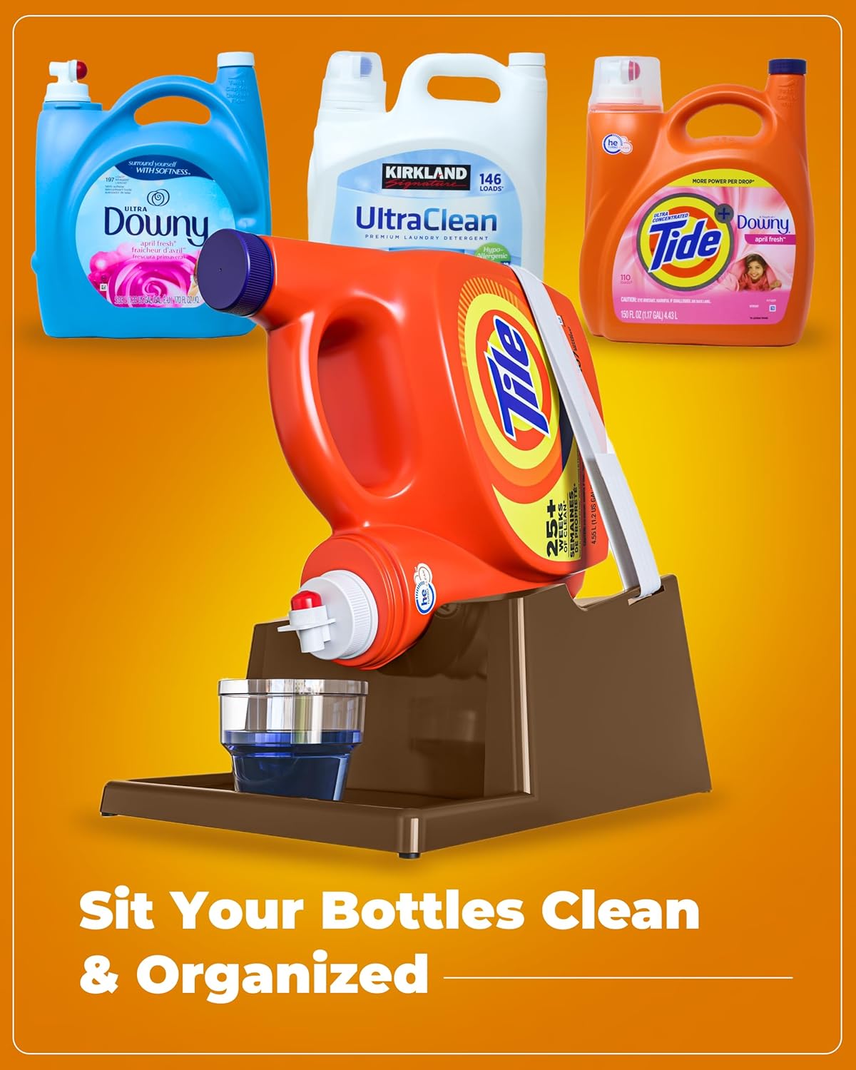 - [Versatile Fit:] The liquid laundry detergent holder station's optimal size (7.9"L x 12.2"W x 5.5"H) accommodates various bottle sizes, providing a perfect fit for most detergent containers without taking up too much space. (Laundry Soap, Cup, and Bottles NOT Included)