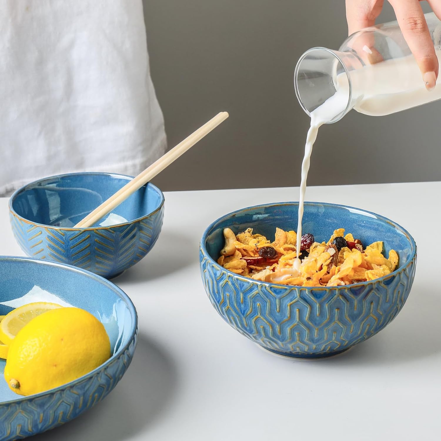 - Unique Embossed Design: These cereal bowls feature a textured pattern that adds elegance and personality to your table; The embossed surface also offers a better grip, helping prevent slips and breakage