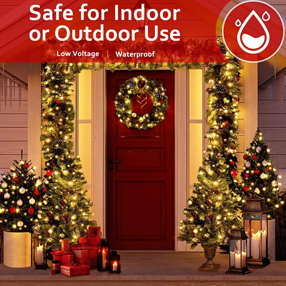 - 29V Low Voltage and Easy to Pacakge : Ensure a safe holiday with our 29 V low voltage Christmas tree lights indoor ,designed as a single, easy wrap. Perfect for effortlessly decorating your tree, our warm whtie christmas tree lights indoor provide a soft, warm glow while minimizing energy consumption. With quick setup and easy wrapping around branches,when the season ends, they are simple to package and store. Ideal for those seeking both safety and convenience,our warm white xmas lights make holiday decorating a breeze, letting you focus on enjoying the festive season