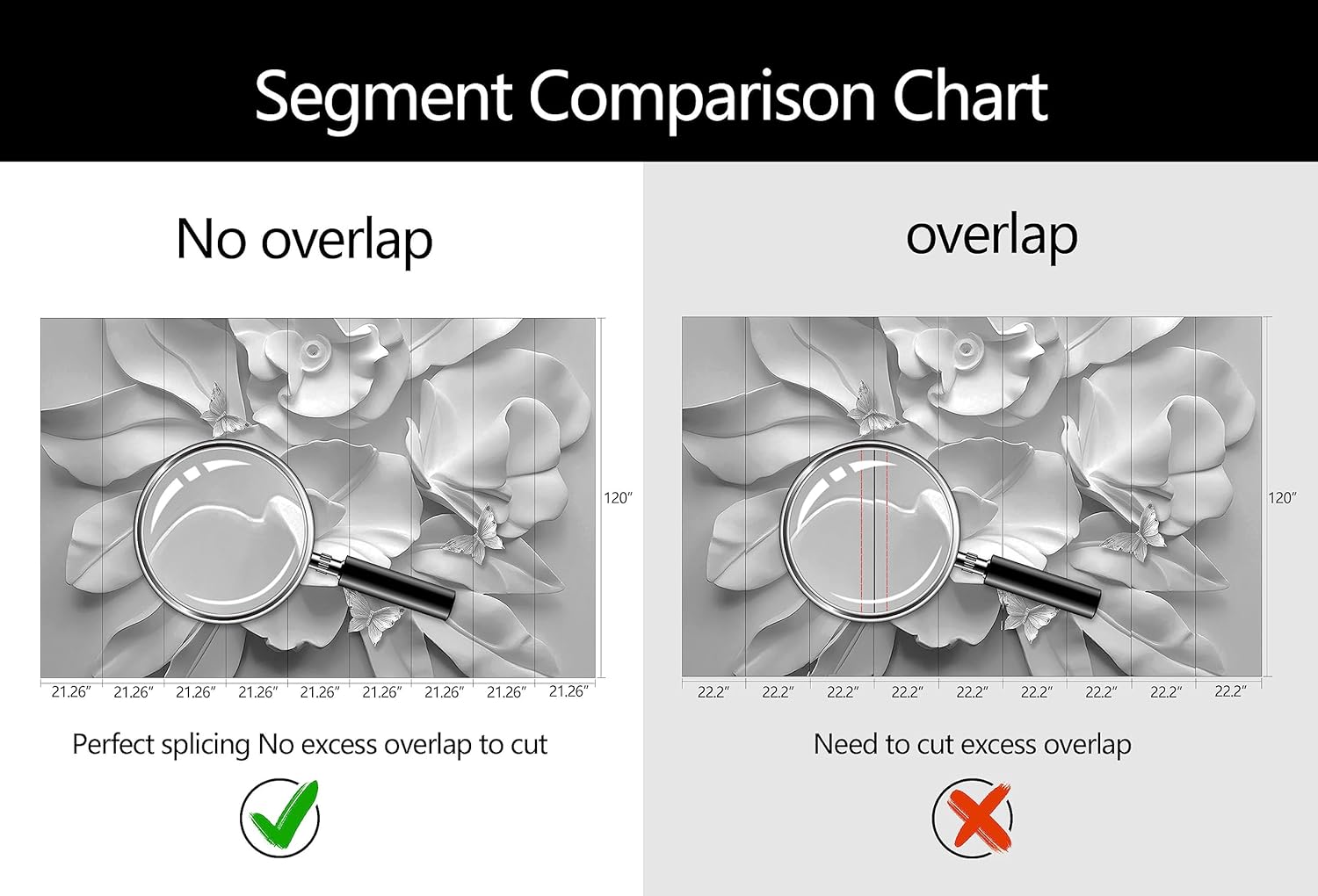 - Mural Size: The total size of this mural wallpaper is 191" x 120" / 486CM x 305CM (W x H), cut into 9 pieces, each measuring 21.26" x 120", for easy installation.