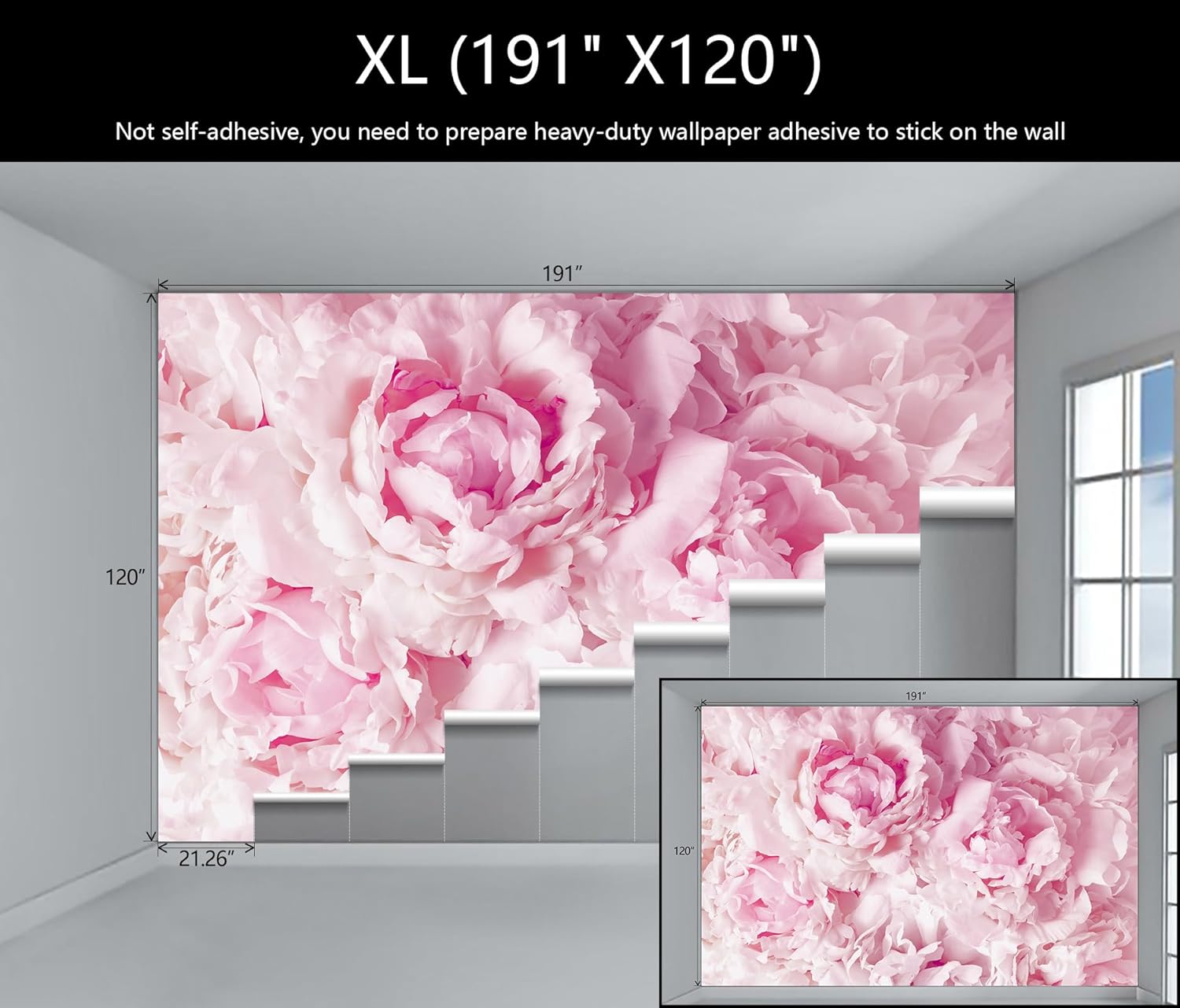 WFBHUA-Pink Floral Wallpaper Mural Peony Flower Wallpaper for Girls Bedroom Wall Murals(Not Peel and Stick)