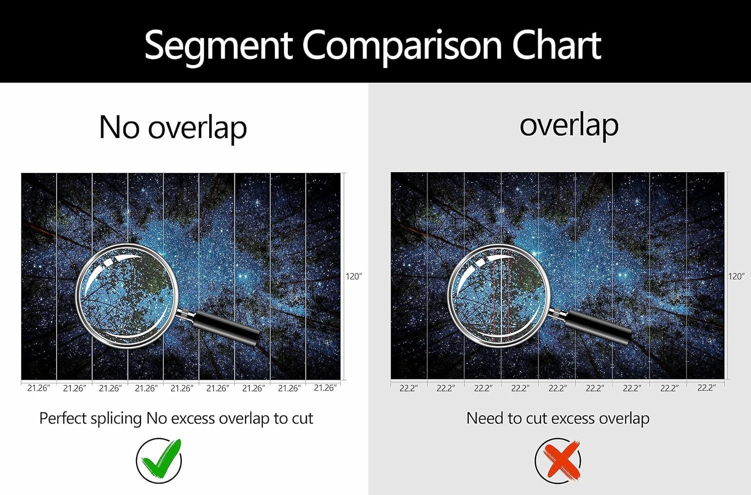 - Mural Size: The total size of this mural wallpaper is 191" x 120" / 486CM x 305CM (W x H), cut into 9 pieces, each measuring 21.26" x 120", for easy installation.