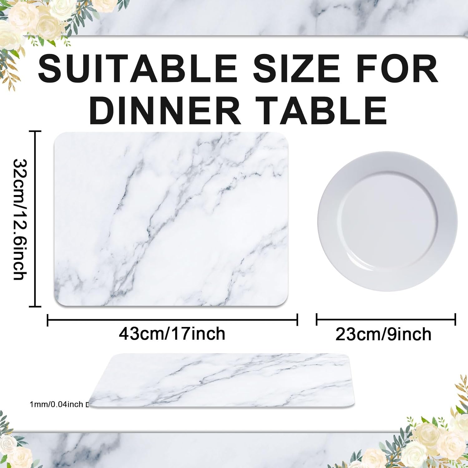- 【Marble Plastic Placemats】You will receive 6 pieces marble plastic place mats. Measuring at 17.0 x 13.0 x 0.04 inches/43 x 32 x 0.1cm, marbles table mats are the ideal size to accommodate your marble theme kitchen dining or gathering. With a sufficient quantity and perfectly sized dimensions, wipe clean place mats are sure to be a hit at your event.