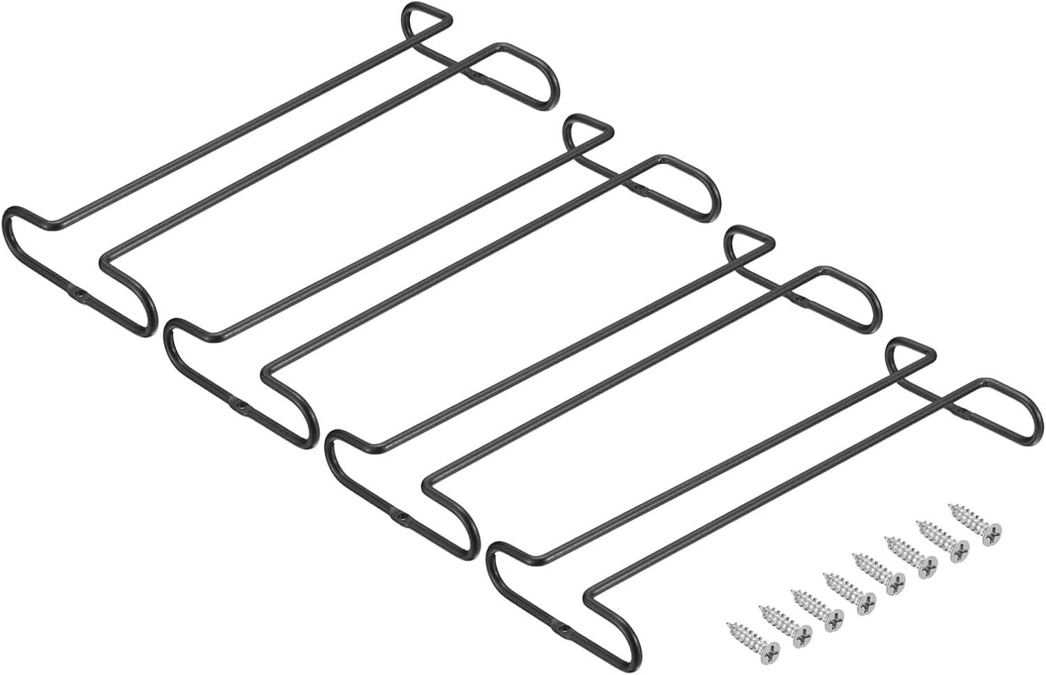 UXcell Under Cabinet Wine Glass Rack, 4-Piece Stainless Steel Stemware Organizer, 10-Inch Hanger for 5mm Stemware, Black