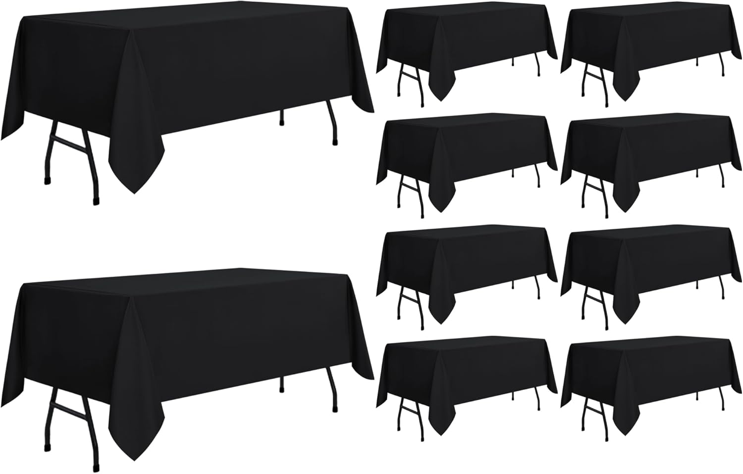 sancua 10 Pack Black Tablecloth 60 x 84 Inch, Rectangle Table Cloth for 4ft Tables - Stain and Wrinkle Resistant Washable Polyester Table Cover for Dining Wedding Banquet Party Buffet Restaurant