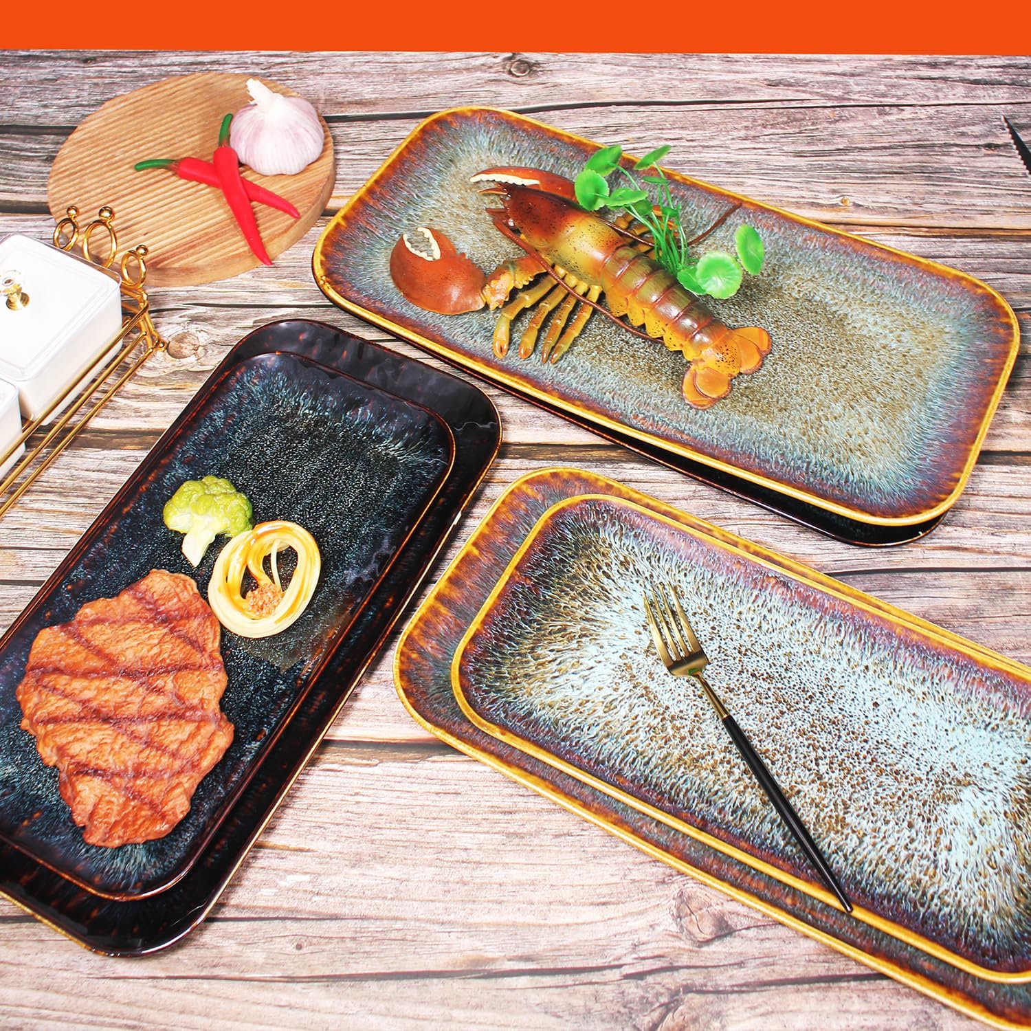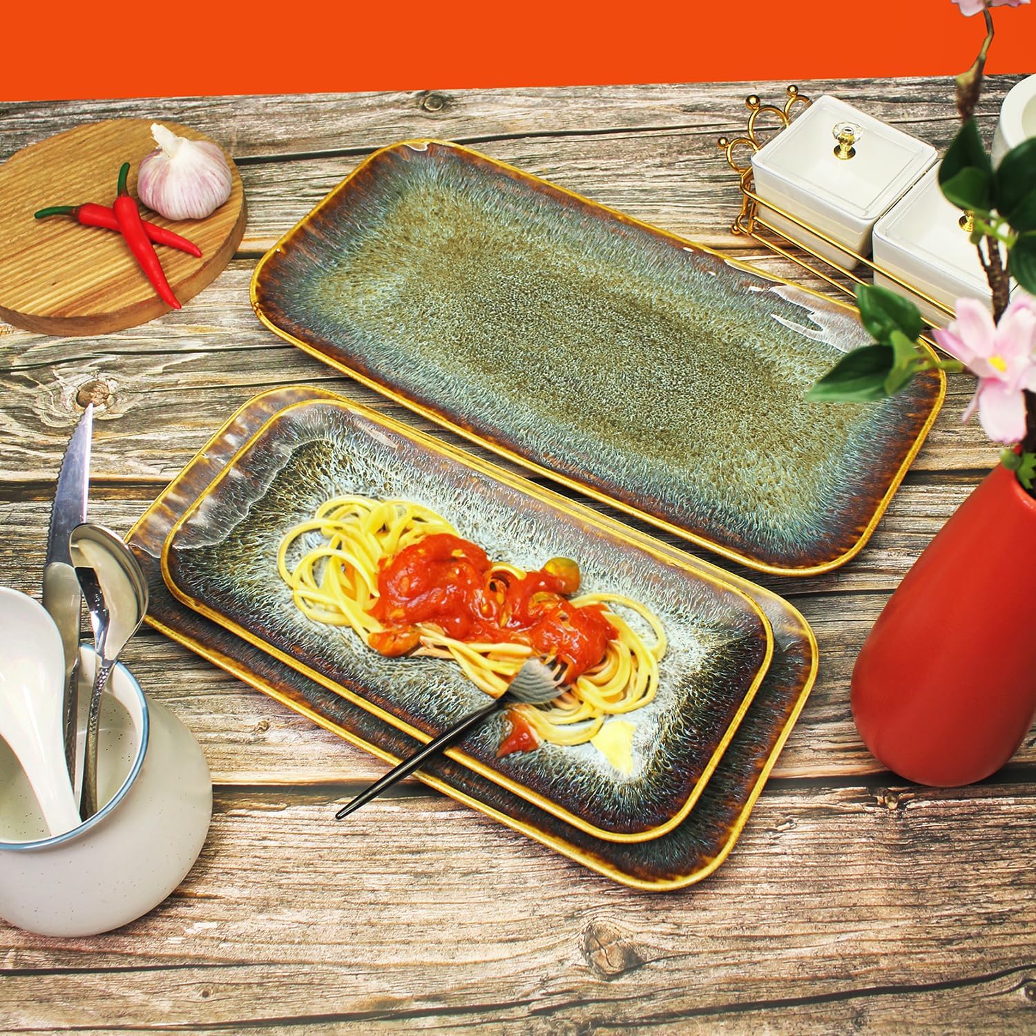 - For All Families: Great size 12.2" x 6" x 0.6" and 14.3" x 7" x 1.06" Set, Perfect for pasta, salad, fruit, Steaks, Platters, Display Plates, without spillage.