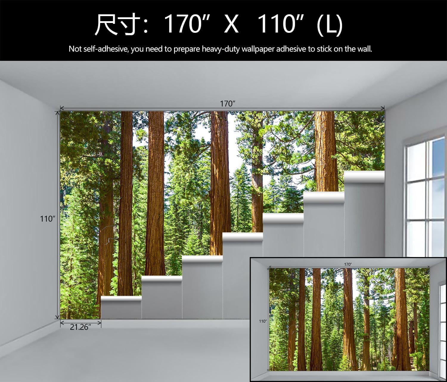 WFBHUA-Redwood Forest Wallpaper Green Woodland Tree Wallpaper for Bedroom Large Art Wall Murals for Living Room Office (Not Peel and Stick)