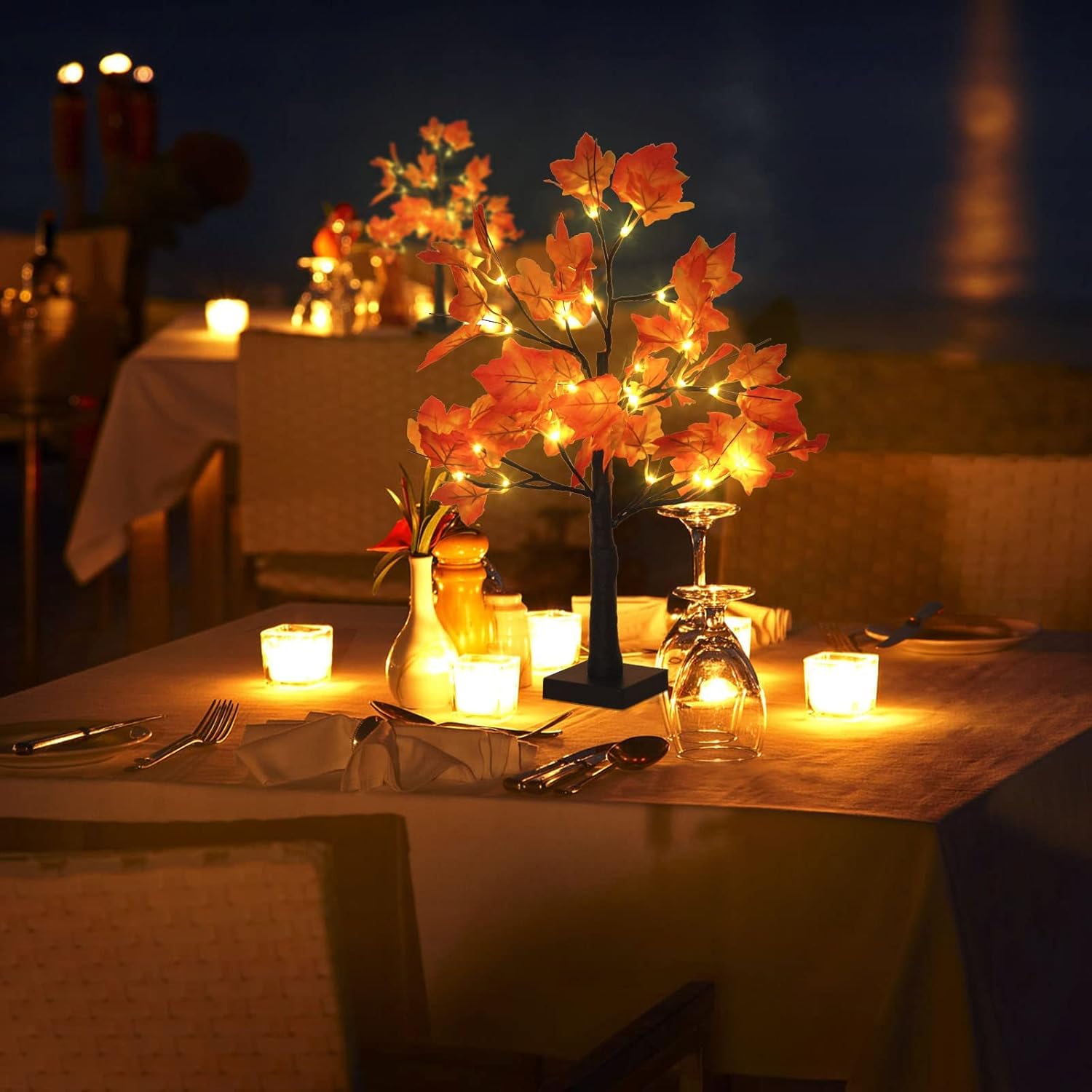 - đăPerfect Autumn Themed DecorăMaple leaves range in color from bright orange to red and look like real autumn leaves, bringing a touch of autumn color to your home to warm up any room.Whether indoors or outdoors, warm white LED fall tree lights add just the right amount of brightness to enhance the beauty of fall.In addition, this Artificial Fall light up trees allow us to express our love for autumn and our families with its dazzling level of appearance.