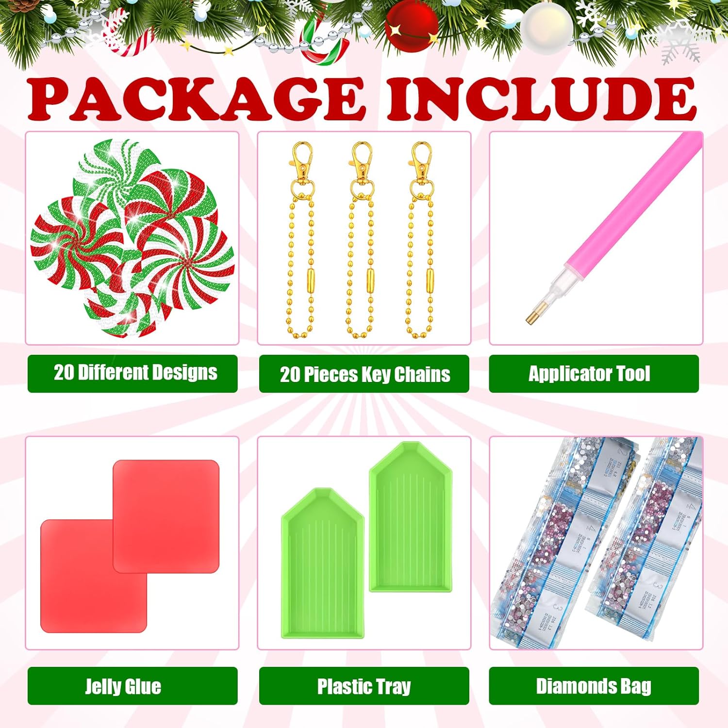 - Package Including: our package contains 20 Christmas diamond candy painting key chains with tools, which are suitable for those who like DIY; Plenty to use for multiple projects or share with friends and family for a fun Christmas break together