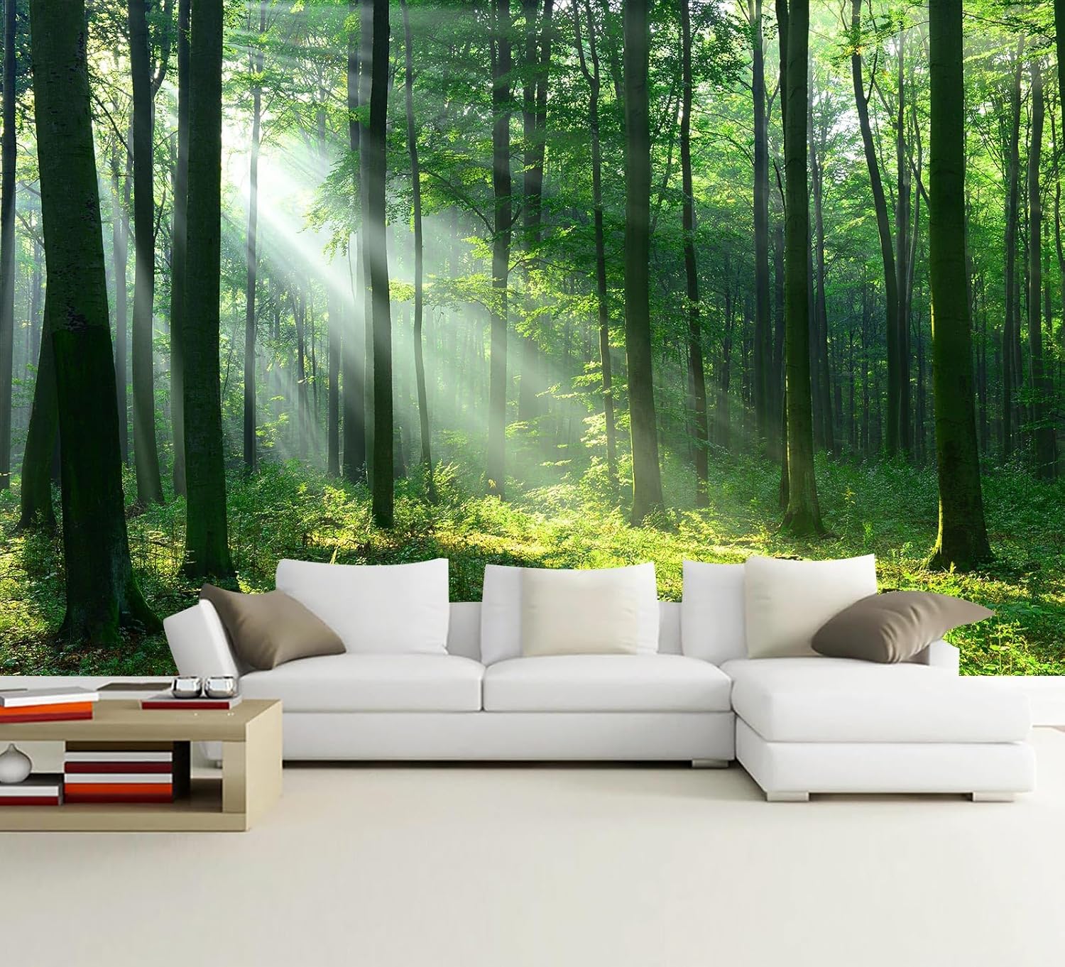 WFBHUA-Green Woodland Wallpaper Mural Foggy Forest Tree Wallpaper Nature Landscape Wall Murals for Bathroom Living Room (Not Peel and Stick)