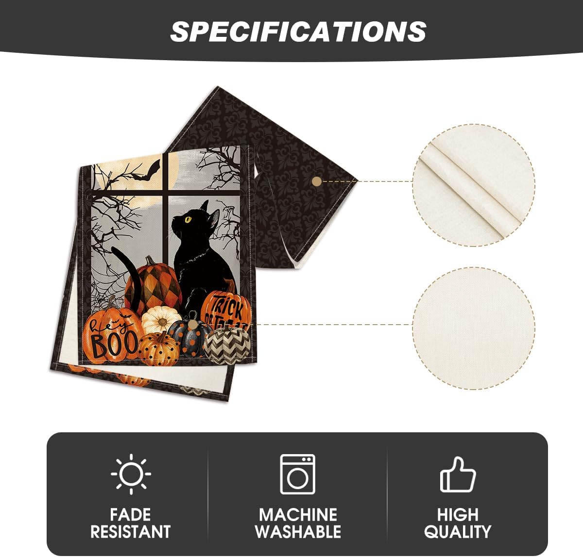 Artoid Mode Black Cat Pumpkins Boo Halloween Table Runner, Trick Or Treat Seasonal Kitchen Dining Table Decoration for Home Party Decor 13x36 Inch